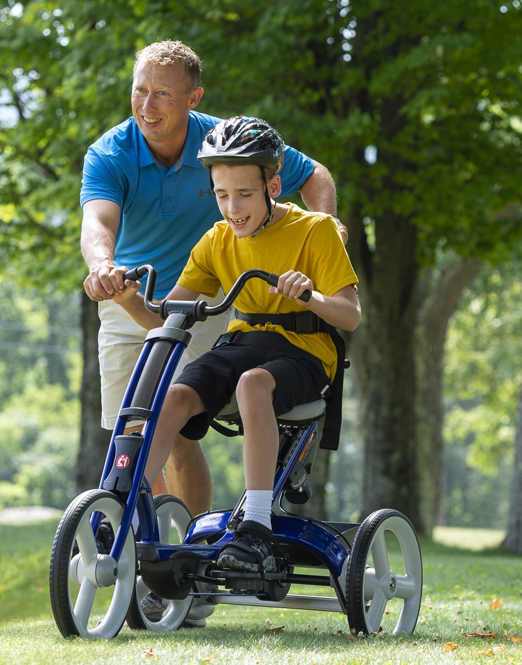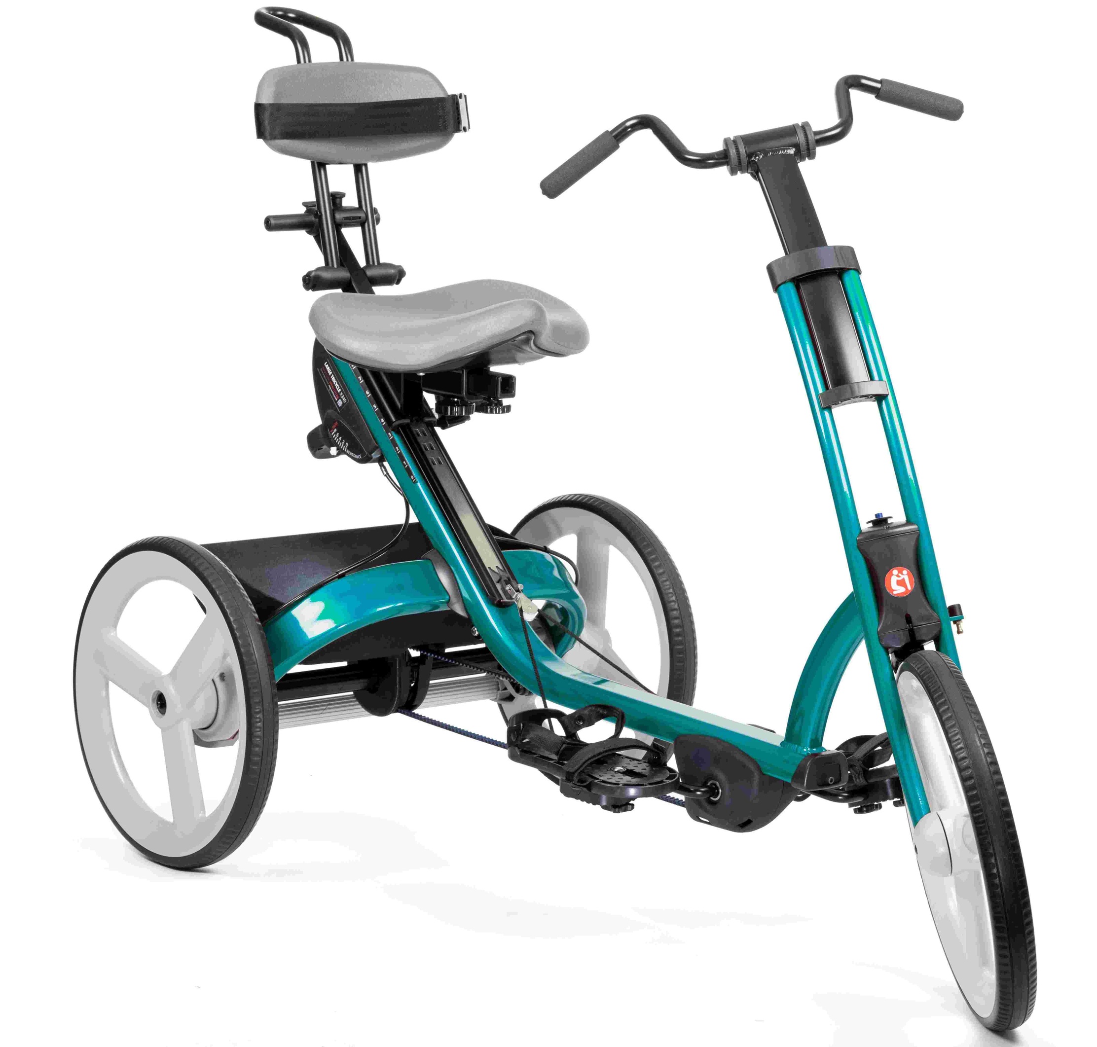 身体状況に合わせて、ハンドルや背もたれを選択・調整し、体幹保持を含む様々なオプションもあり、安心して乗れる訓練用の三輪車です。楽しみながら下肢の運動ができ、関節可動域や筋力、バランス能力や視空間認知の向上などのリハビリにつながります。座面やハンドルの高さなどの調整は、工具を使わずに行えます。