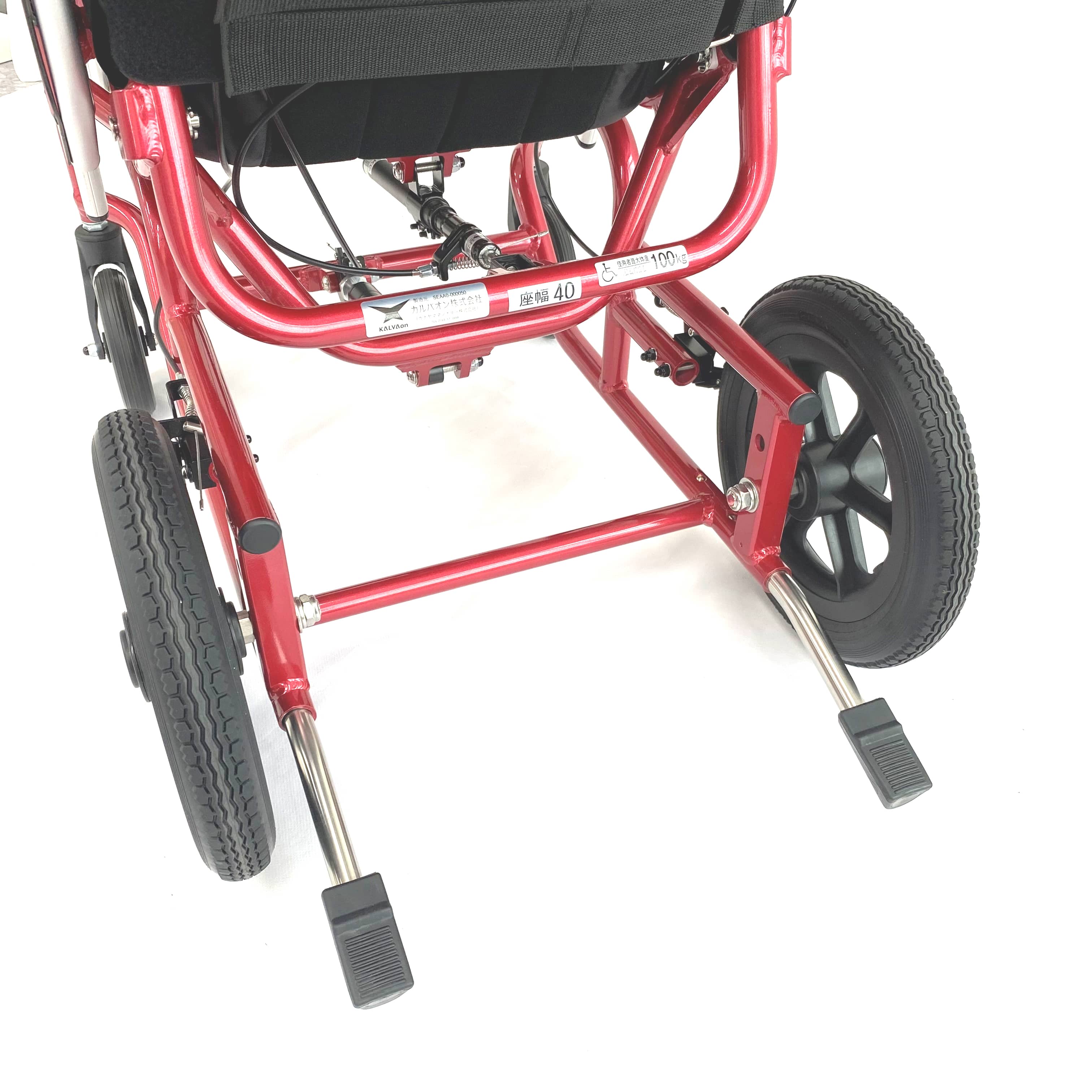 車いすでの生活時間が長い方のために、様々な体型・姿勢にフィットさせやすく設計された車いすです。特に通常のハイバックタイプの車椅子では頭や肩が安定しにくい「円背」の方には、背フレーム途中で角度が変えられる「背もたれジョイント」を調整し、大腿部から頭部まで包み込むようにサポートすることで、リラックスして座って頂く事が可能です。
