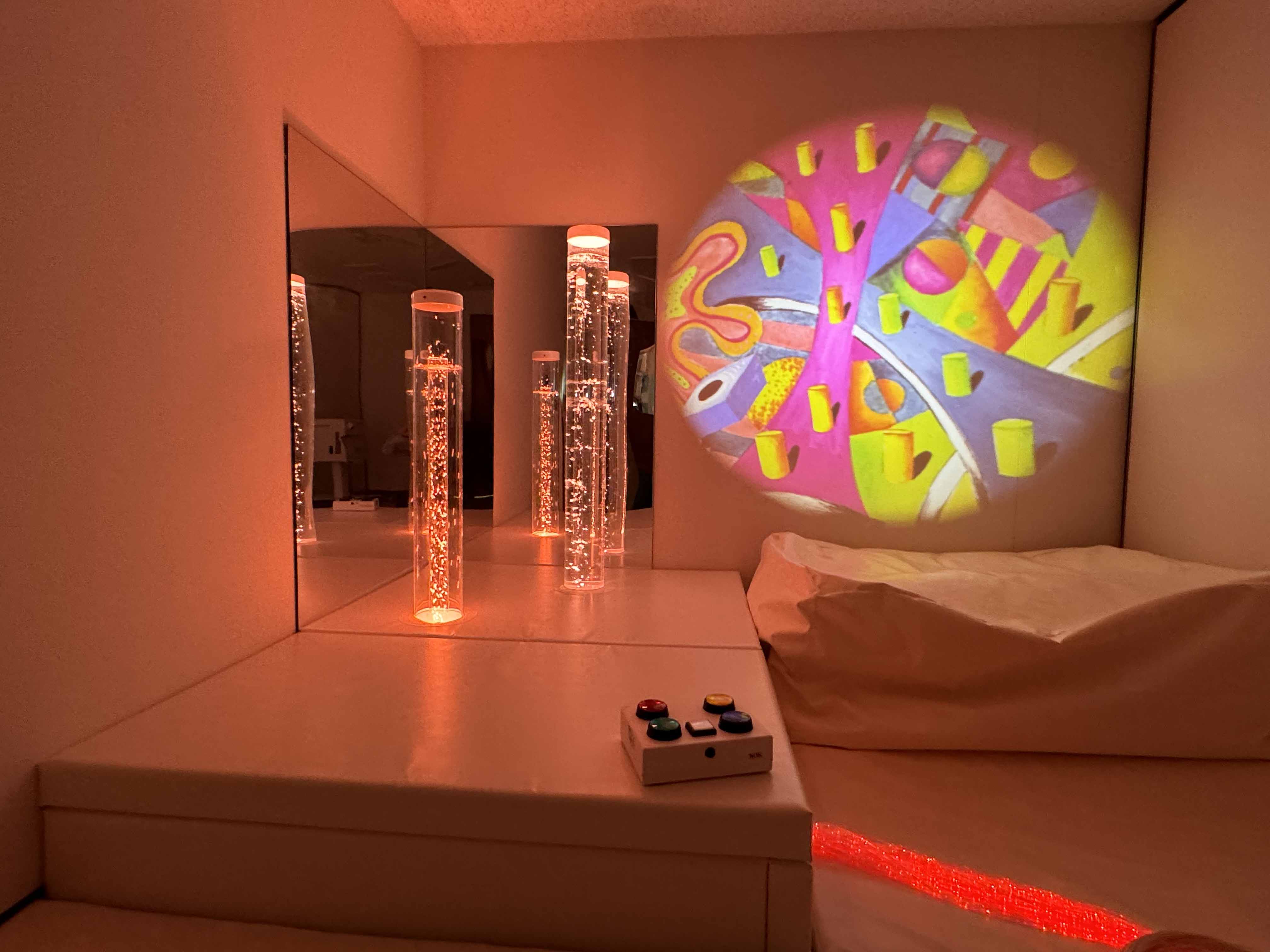障がい児(者)や高齢者、認知症の方等が受け入れやすい視覚、聴覚、触覚等への刺激を提供します。水の心地良い動き、柔らかな照明、音楽、香り等が醸し出す環境は、支援者も共に刺激を分かち合い楽しむことのできるスペースです。自身の選択で自身のペースで自分らしく過ごすことのできる環境グッズを提供します。部屋の大きさ、予算に合わせ最適な商品、スペースを提案します。