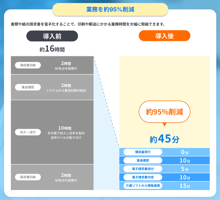 AI活用して請求書の電子化を行い、郵送コストと事務業務の削減&効率化ができるサービスです。