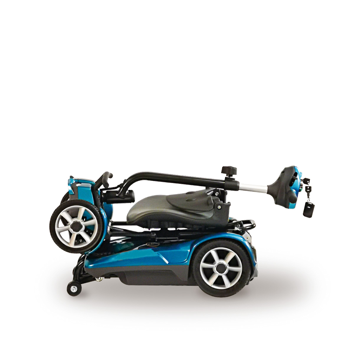 電動で簡単に折り畳み可能な電動車いす。小型・軽量で、公共交通機関や船舶等にも気軽に持ち込むことができる。