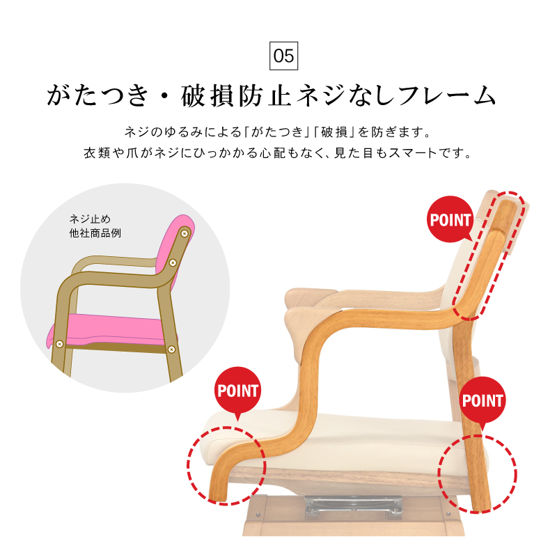 ・ネジ無し仕様。破損の原因となるネジの緩みがおきない造りです。