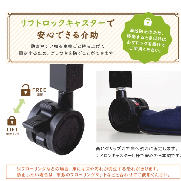 ・全脚キャスター(リフトロック機能あり)付き。ちょっとした室内の移動に重宝します。