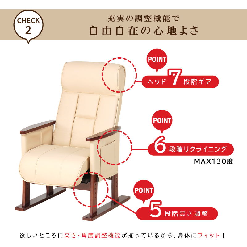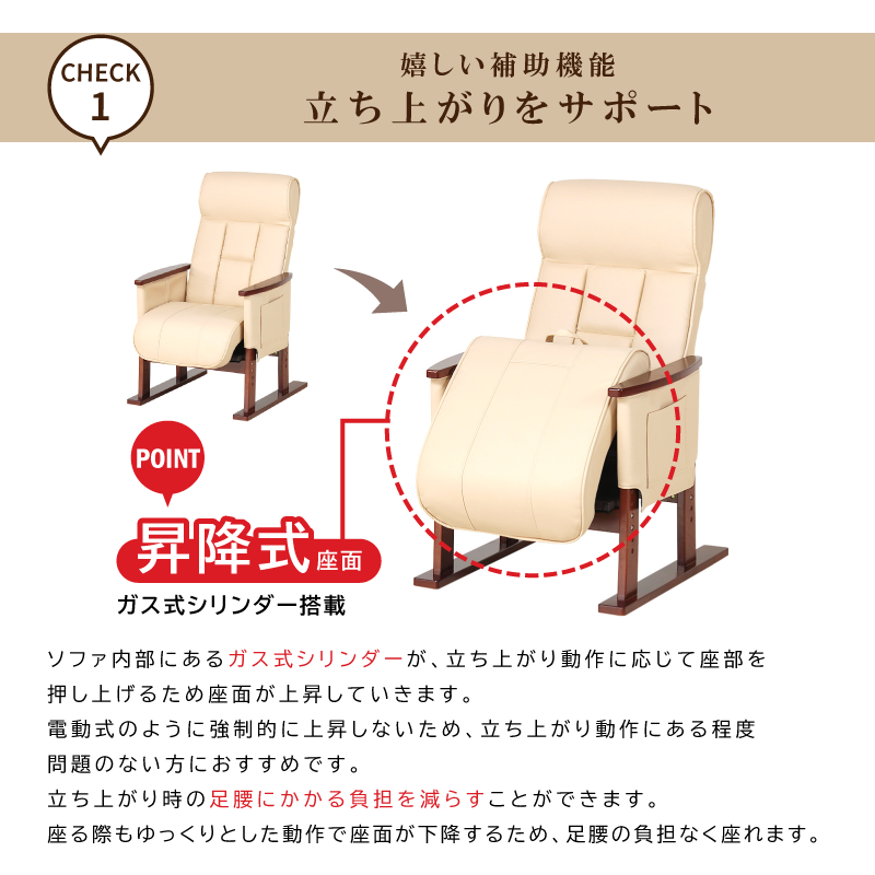 座部ガスシリンダー仕様で、立ち座りの安心感をサポート