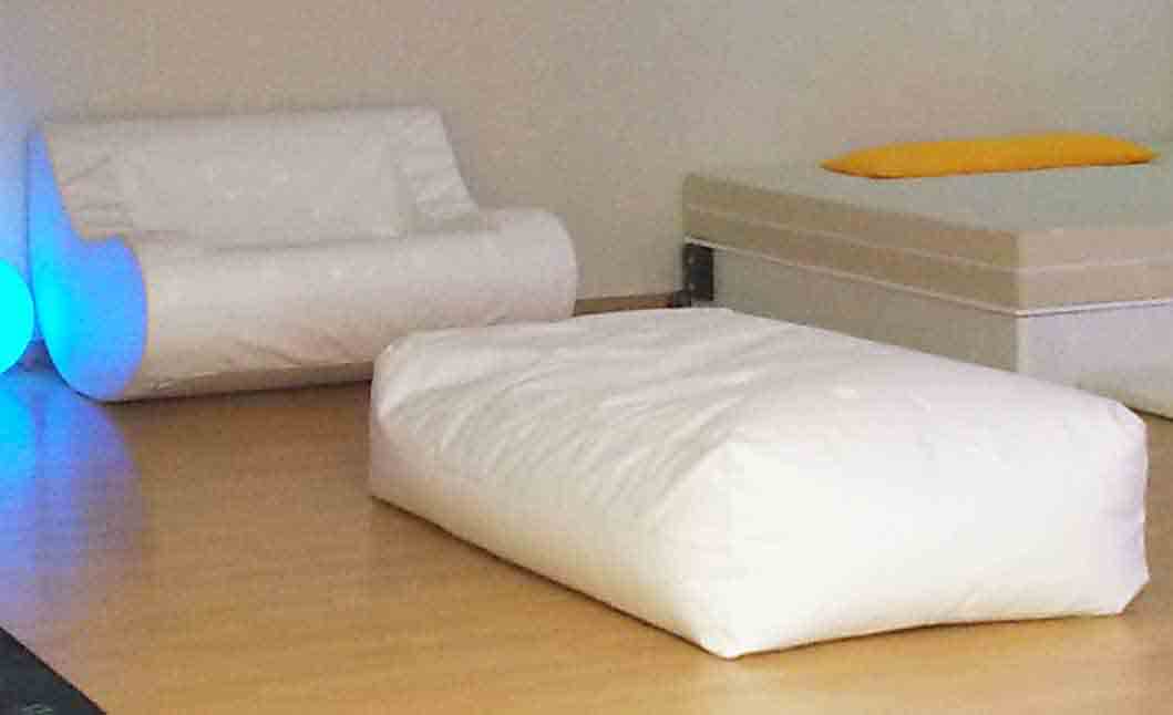 ビーンズ・クッションは、身体をやさしく支え、適度な硬さを保ち、いつまでも座ったり横たわったりしていたくなる、ゆったりとした心地良いクッションです。また、バイブレーション・システムが内蔵されたタイプでは、横たわりながらクッションの中から流れ出る音楽と、音楽に合わせた振動を、全身で楽しむことができます。用途に合わせ多くの種類があります。