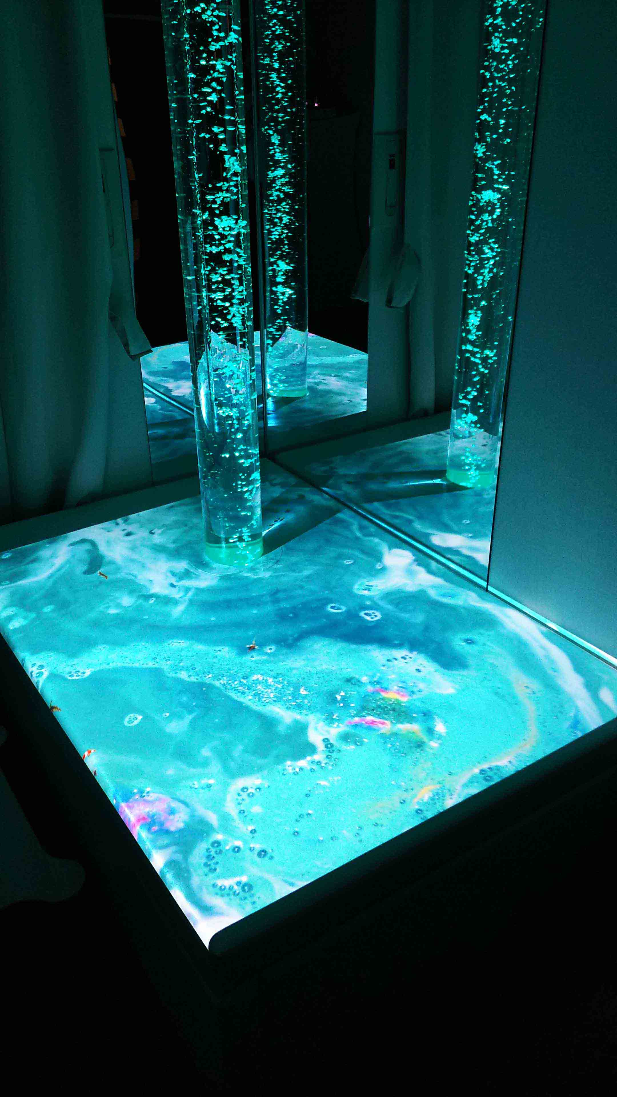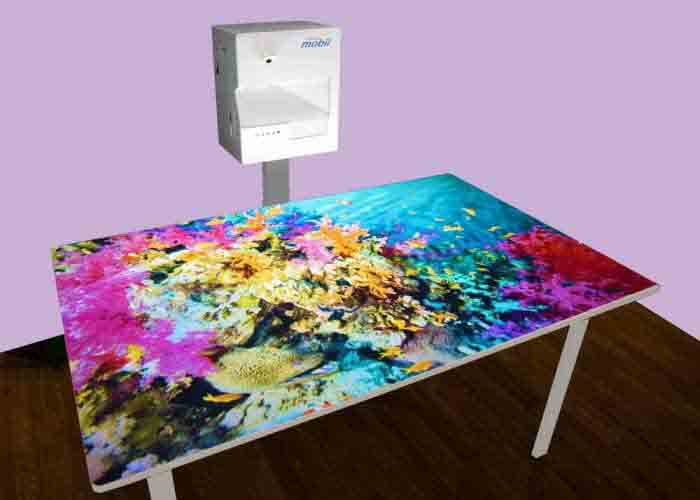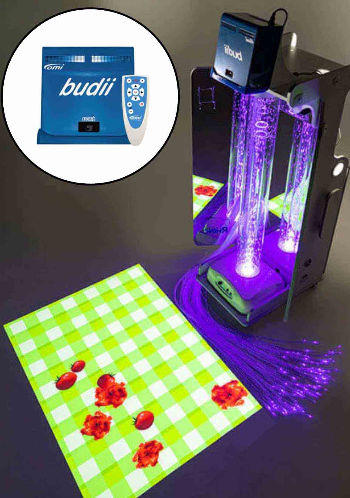 本体は電動で上下可能なため、映像を床に映したり、またテーブル等の上に写すことができます。利用者の動作により、映し出された映像を変化させたり、映像に合わせた音を楽しんだり、インターアクティブな遊びができるプロジェクターです。300種類以上の映像が6つのカテゴリにーに内蔵されていて、一人でもグループでも楽しめます。