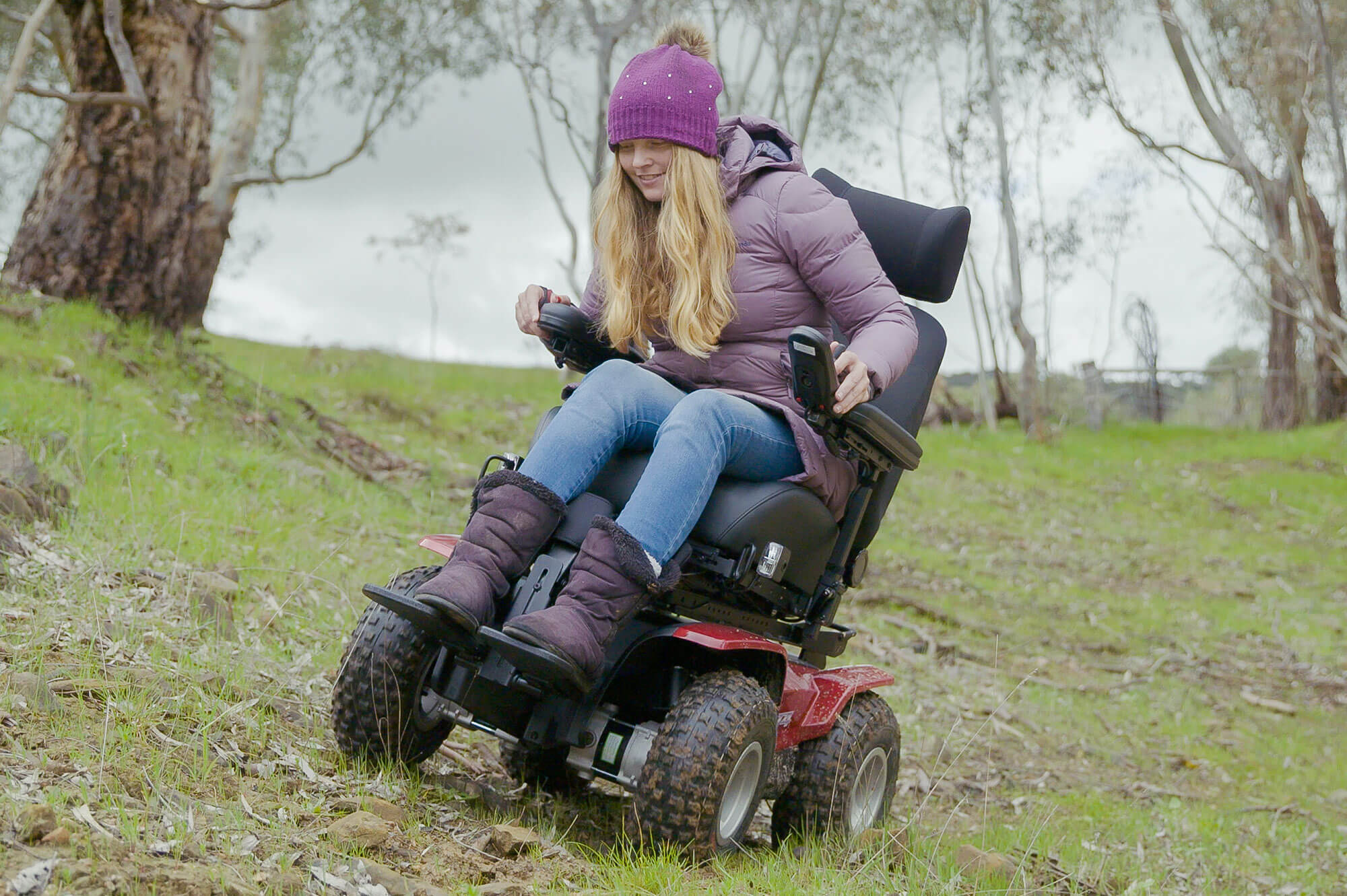 未だかつてないアウトドアの限界に挑戦しよう!世界で最も先進的な 四輪駆動 電動車いす 『 XT4 』 の特許取得済み前方&後方サスペンション、自社開発のサーボ ステアリング、大容量バッテリーは、実績ある性能の低圧ノビータイヤと組み合わされています。そしてこれらすべては、平坦ではない世界で必要とされるトルクが原動力です。