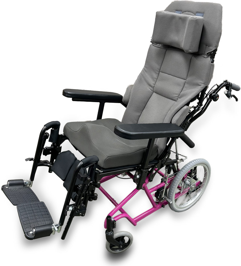 KOYAの高齢者用車椅子のスタンダードモデル『巧』の上位モデルです。別動作によるリクライニング・ティルト機構と足台エレベーティングで足元も含めてフルフラットになります。車輪の幅を従来モデルより狭めたことでベッドにより近づけ、移乗がしやすくなりました。