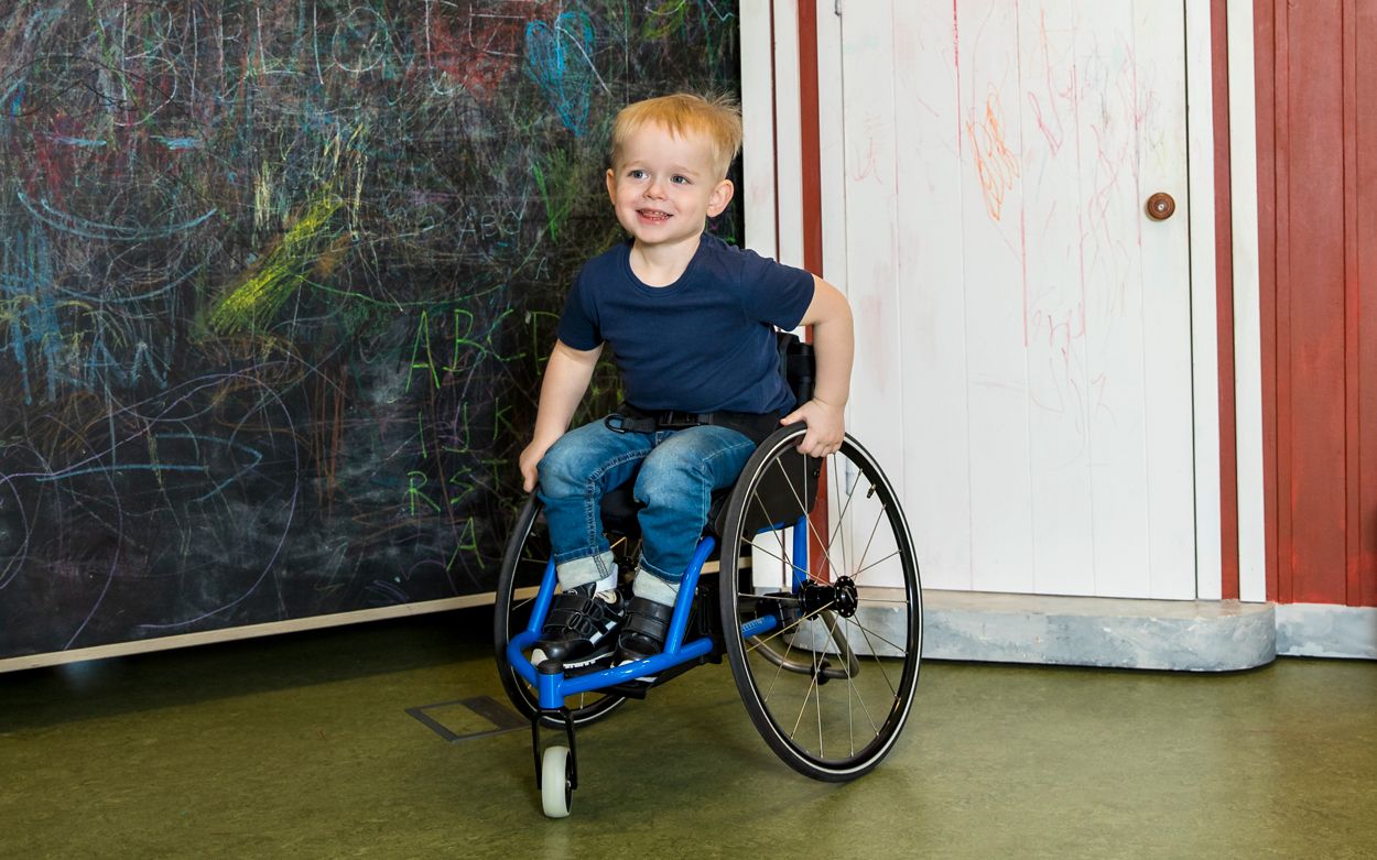 どんな子どもでも、自分の力で自由に動きまわりたいと願っています。ミクロはそんな願いをかなえてくれる車椅子。