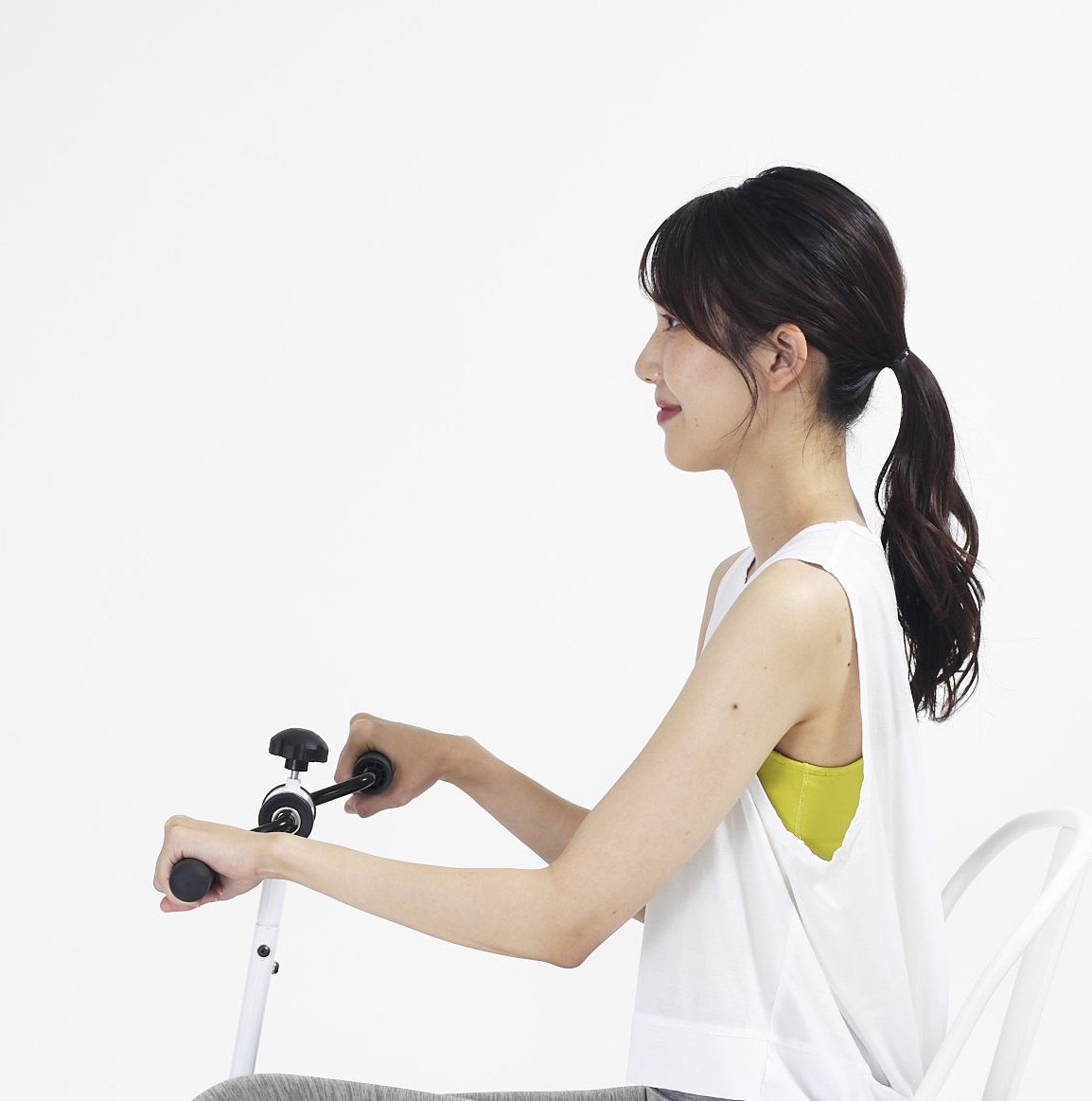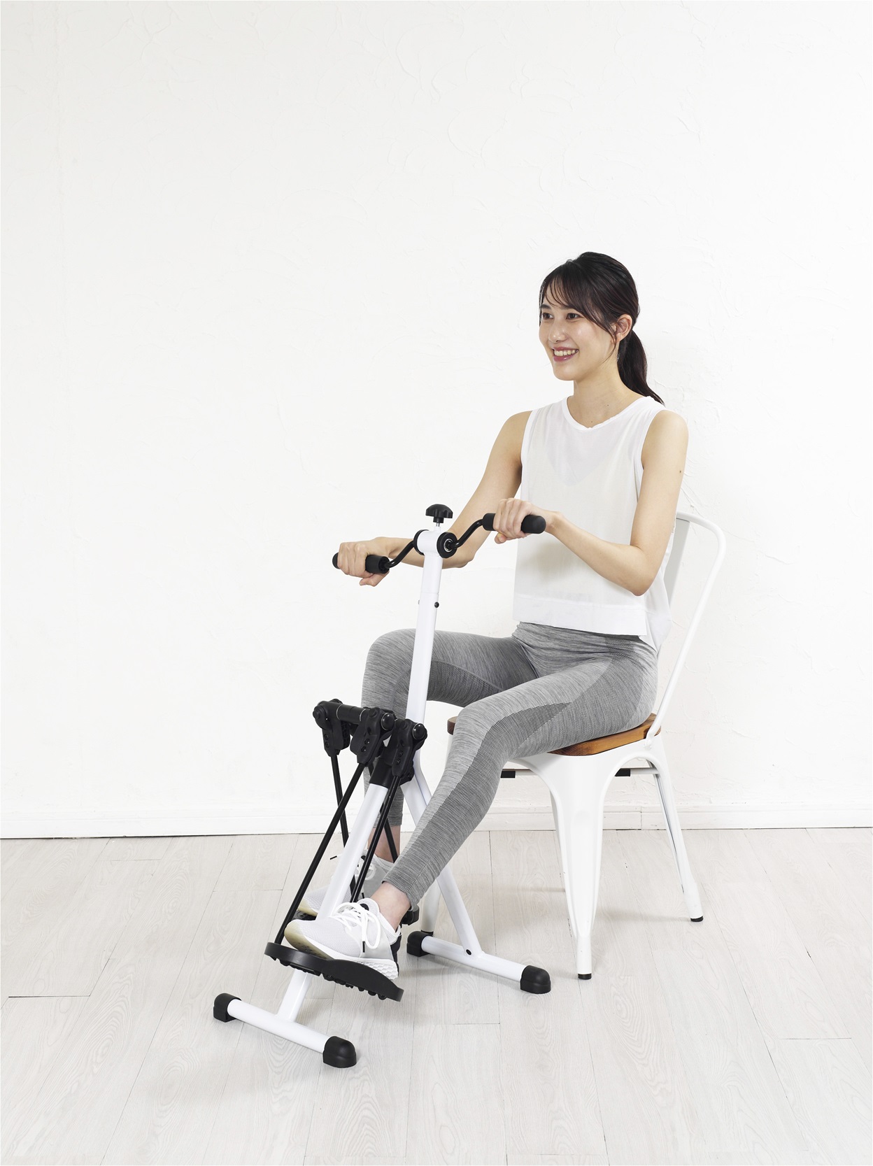 スイングアームサイクル AHE3000は、上半身もエクササイズできるハンドル付きのエクササイズサイクルです。 前後左右、自由自在に動くペダルで幅広い筋肉を使いながらエクササイズできます。 また、同時にハンドルを回すことで上半身のエクササイズも可能です。 ハンドルの負荷はダイヤルを回すことで自由に調節できます。 ペダルは体重をかけながらしっかり踏み込むことができるワイドペダルで、安全・快適な運動をサポートします。 これ一つで上半身、下半身同時に鍛えることができ、椅子に座って運動できるので、在宅リハビリにもおすすめです。