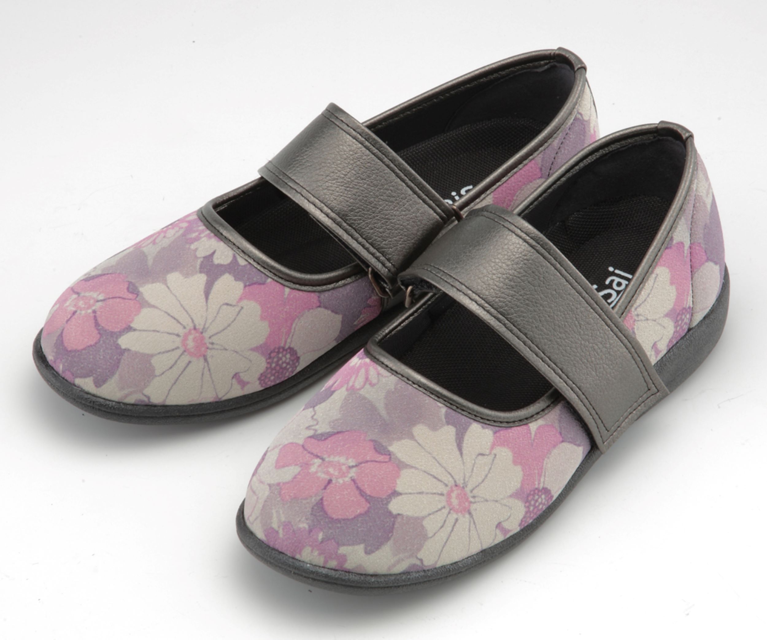 大きく開く履き口で、足入れがしやすく、外反母趾や腫れ・むくみ等の症状がある方にも履きやすく快適にご使用できます。