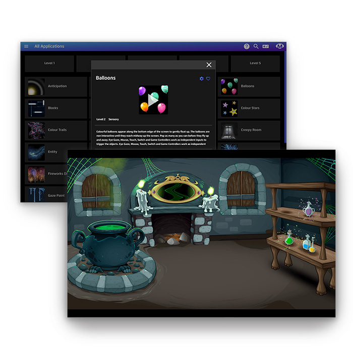 マジックアイFXは、「見る力」を育てる感覚学習ツールになります。5レベル40種類ものゲームを通して、視線操作の学習をすることが出来ます。ソフトウエアは日本語版はなく英語版のみになり、基本版とプロ版がございます。プロ版には「Analytics」という分析機能があり、ユーザーのゲーム内容が録画され、ユーザーの注視時間や視線軌道、ヒートマップ等の視線状況を確認することが出来ます。