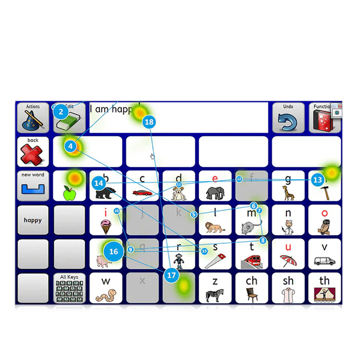 対象物を見る力、認知的な理解、コンピュータのアクセス方法として視線入力が使えるか等を理解するのに役立つツールです。トビー視線ビューワと視線入力装置を使えば、被験者がパソコン画面上に表示された電子教科書、教材、電子書籍、ゲーム、写真、ビデオなどを見ている時の視線を追跡し、結果を静止画とビデオで可視化して保存できます。