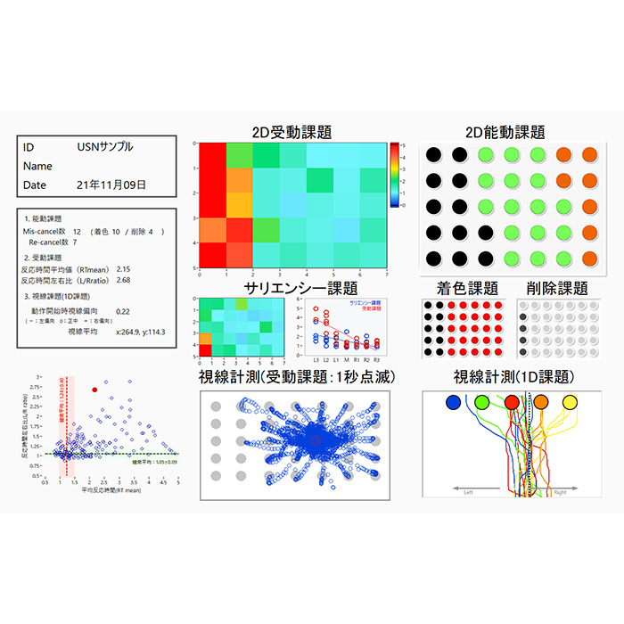 半側空間無視をはじめとする注意ネットワーク障害の客観的評価および症状改善の為の介入手段を提供するPCベースのリハビリテーションツールです。タッチパネルPCによる反応時間分析では、反応時間の空間分布を検討することで能動・受動的注意の評価が可能です。また、アイトラッカーによる注視点分析では、左右反転画像視認時の視線分析を行うことで半側空間無視の特性を把握します。@ATTENTION version1導入施設様のフィードバックを踏まえ、半側空間無視の特徴が把握しやすくなるよう評価機能を追加して、現在はVersion2にアップグレードしています。