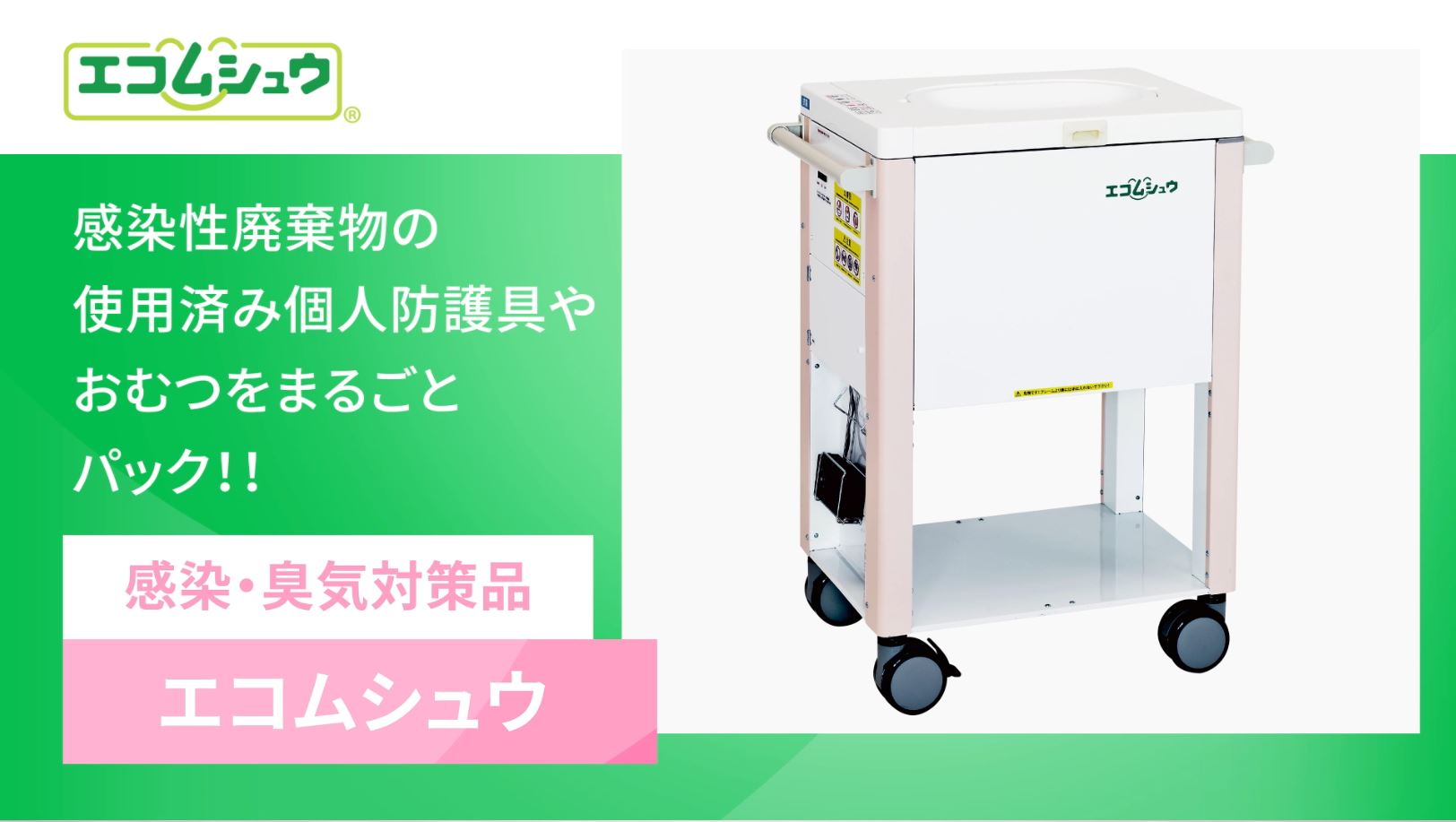 エコムシュウは、病院や介護施設、高齢者住宅など多くの現場で導入が進んでおり、「快適で清潔なケア空間をつくる」という目的のもと、臭いと感染の両面から環境改善に貢献しています。