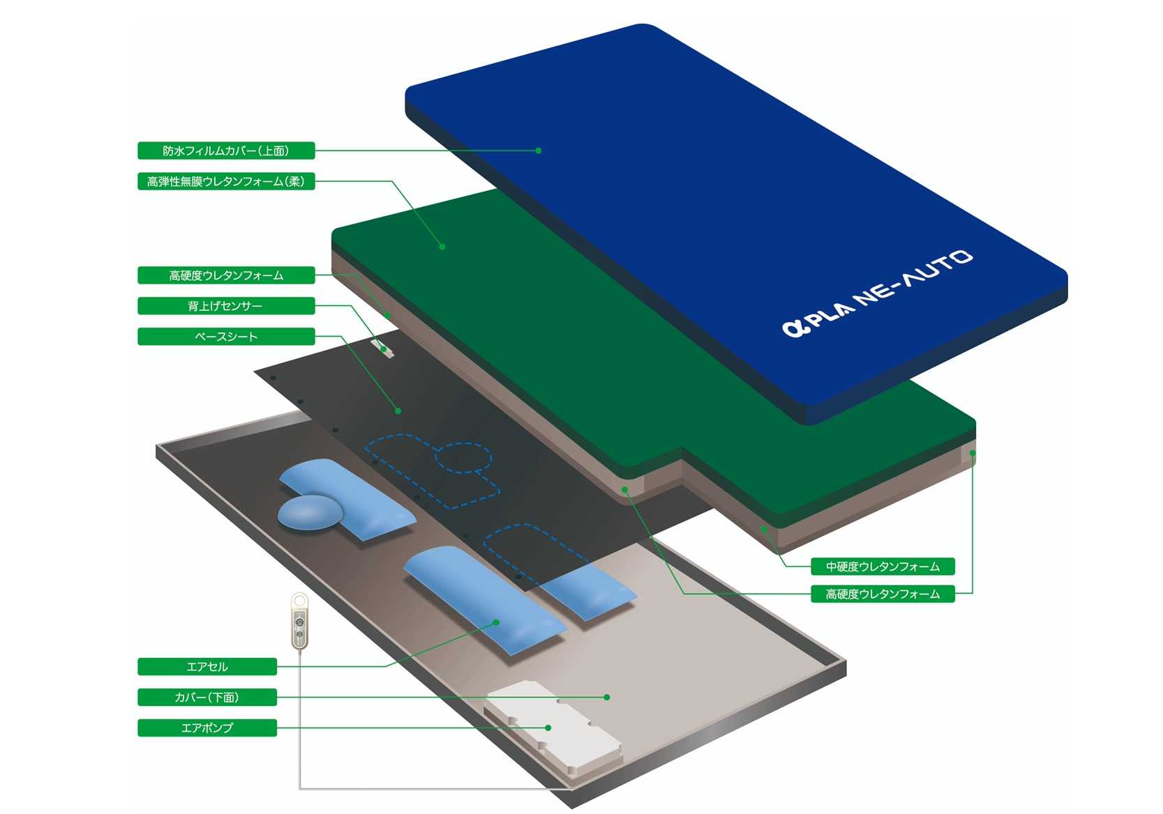 自動体位変換機能付静止型マットレス「アルファプラ ネオート」を開発しました。