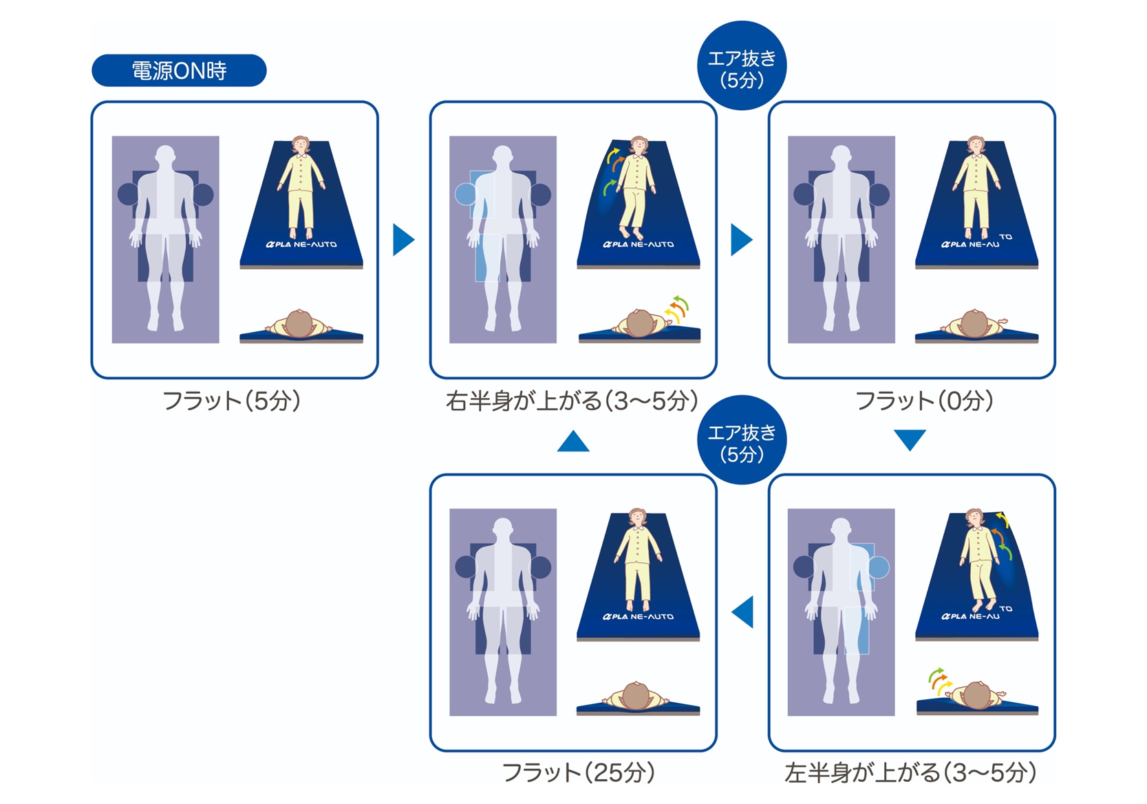 自動体位変換機能付静止型マットレス