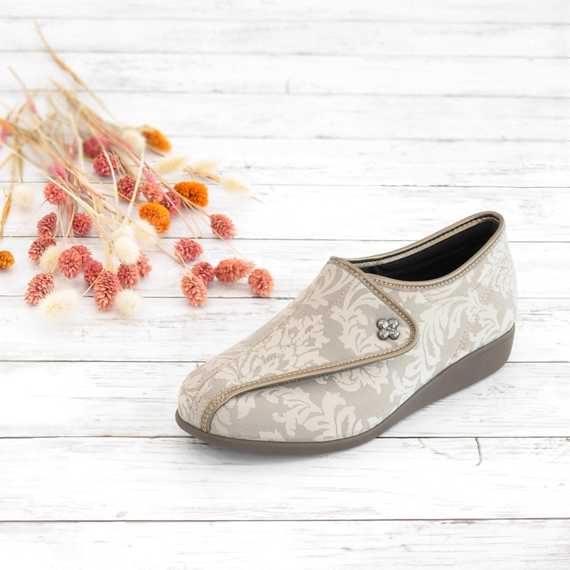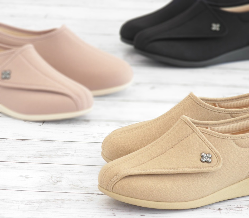 加齢による骨格・歩行時の体重移動の変化に着目し開発した 「フットオンコントローラーシステム」 採用、筋力や運動機能の低下を踏まえた軽量設計、脱ぎ履きしやすい履き口形状など足にやさしい靴のロングセラーです。