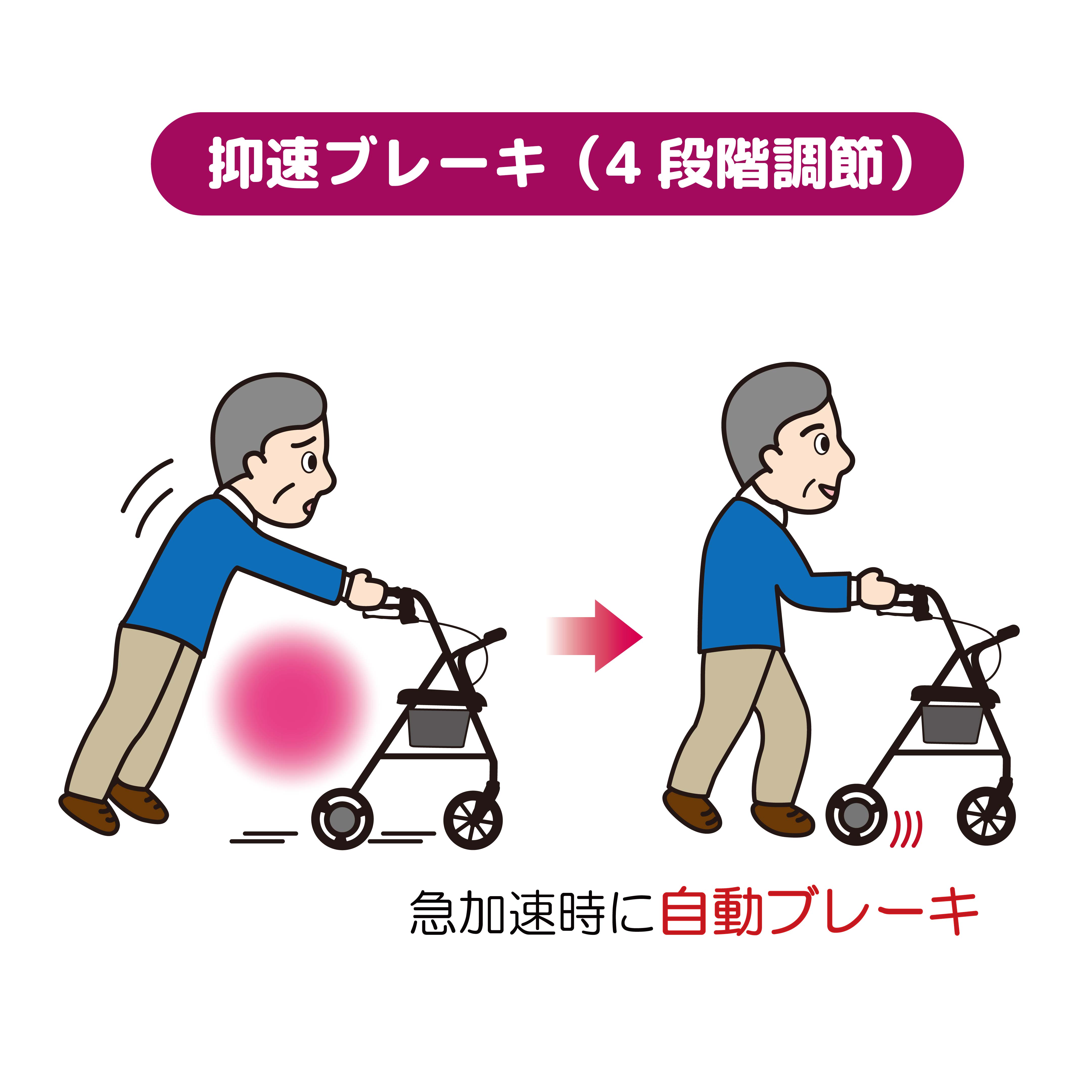 折りたたみ時自立可能なハッピーIIIに急加速を抑える機能を搭載。抑速ブレーキは4段階に調節可能。