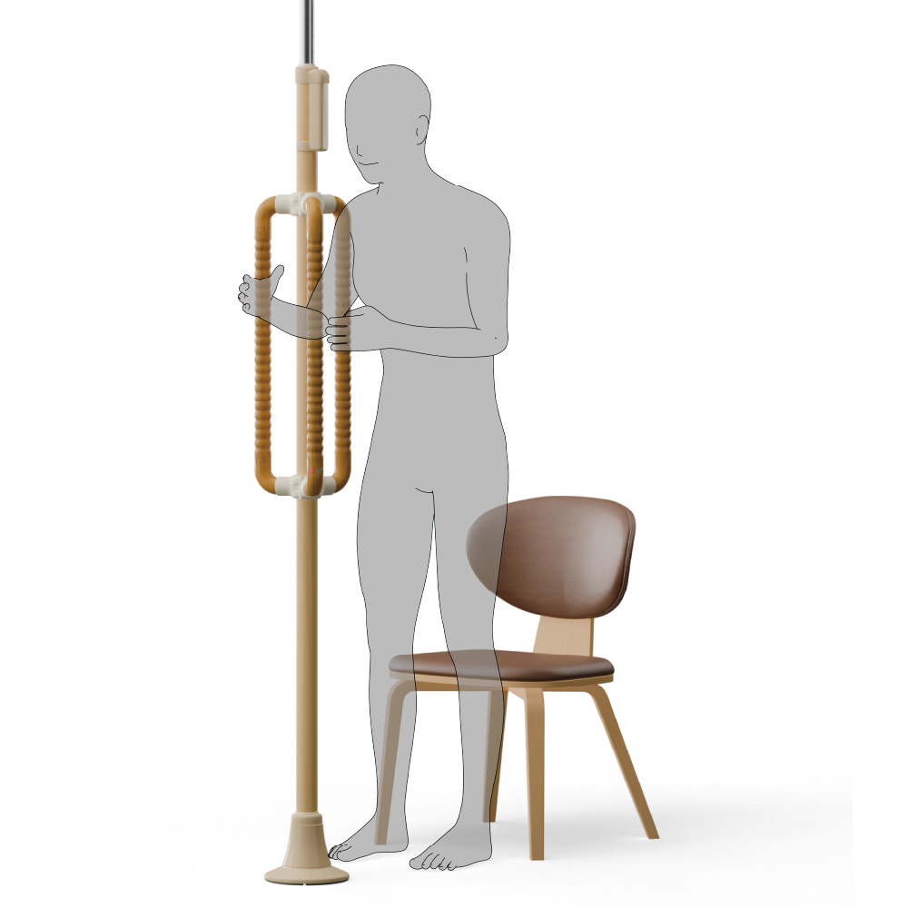 三方向に配置された手すりにより、移乗・方向転換・立ち座りを連続的に支援します。