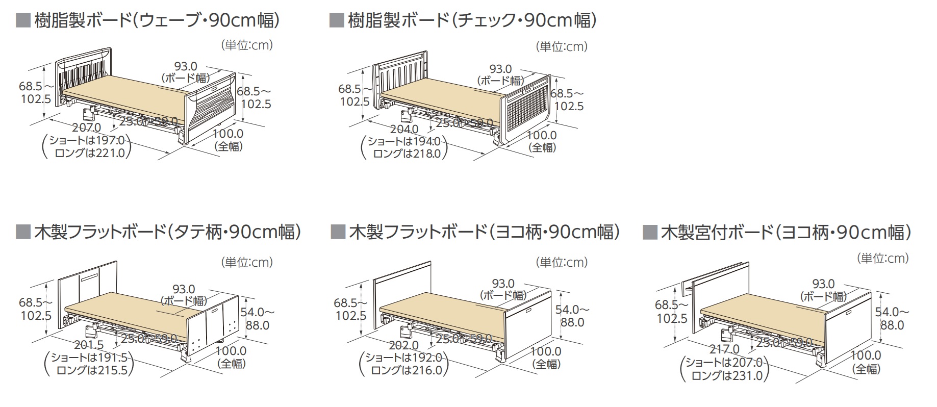 サイズ レギュラータイプ/ショートタイプ/ロングタイプ 90㎝幅 / 83㎝幅
