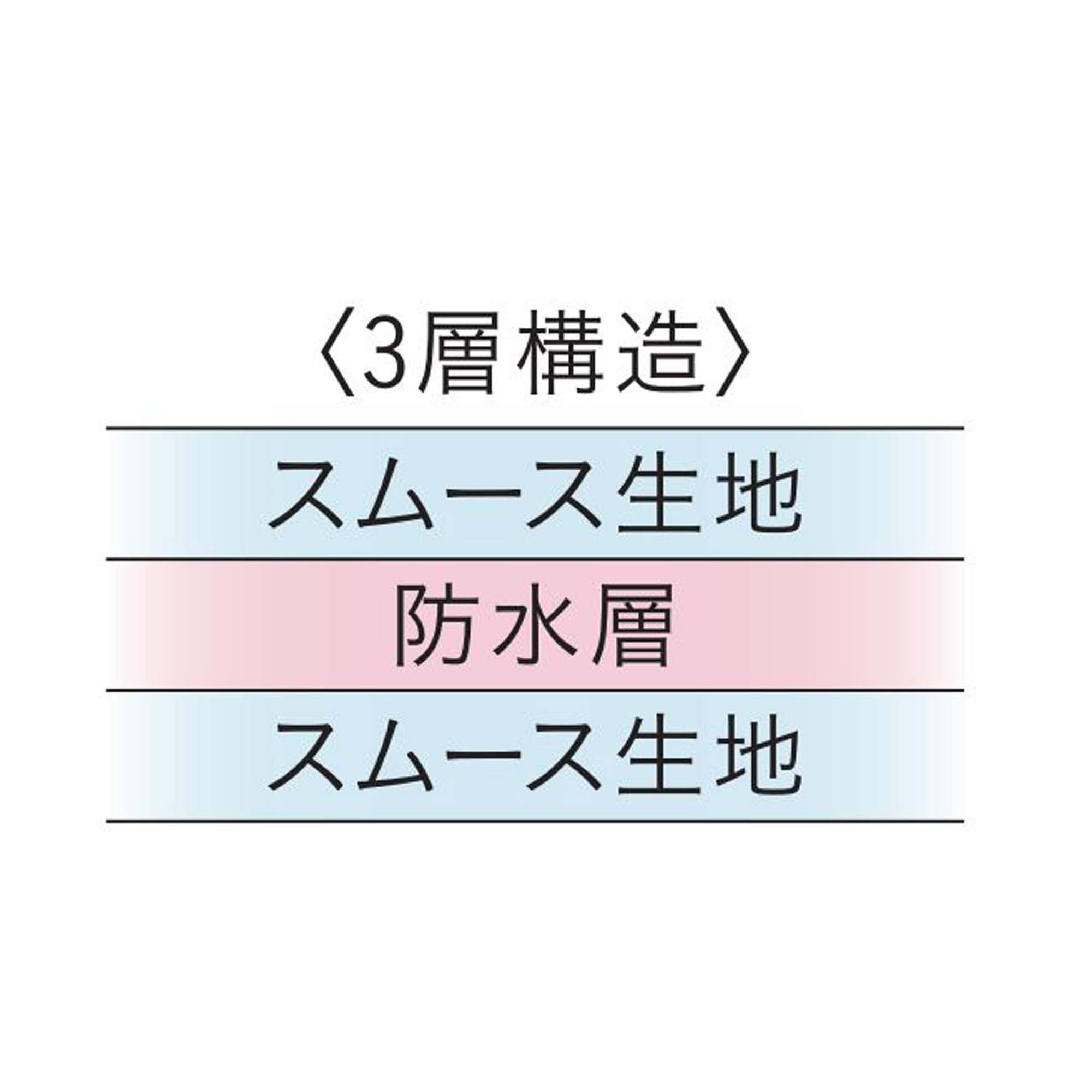 両面スムース生地と防水層の三層構造。洗濯に強く心地良い肌ざわり。