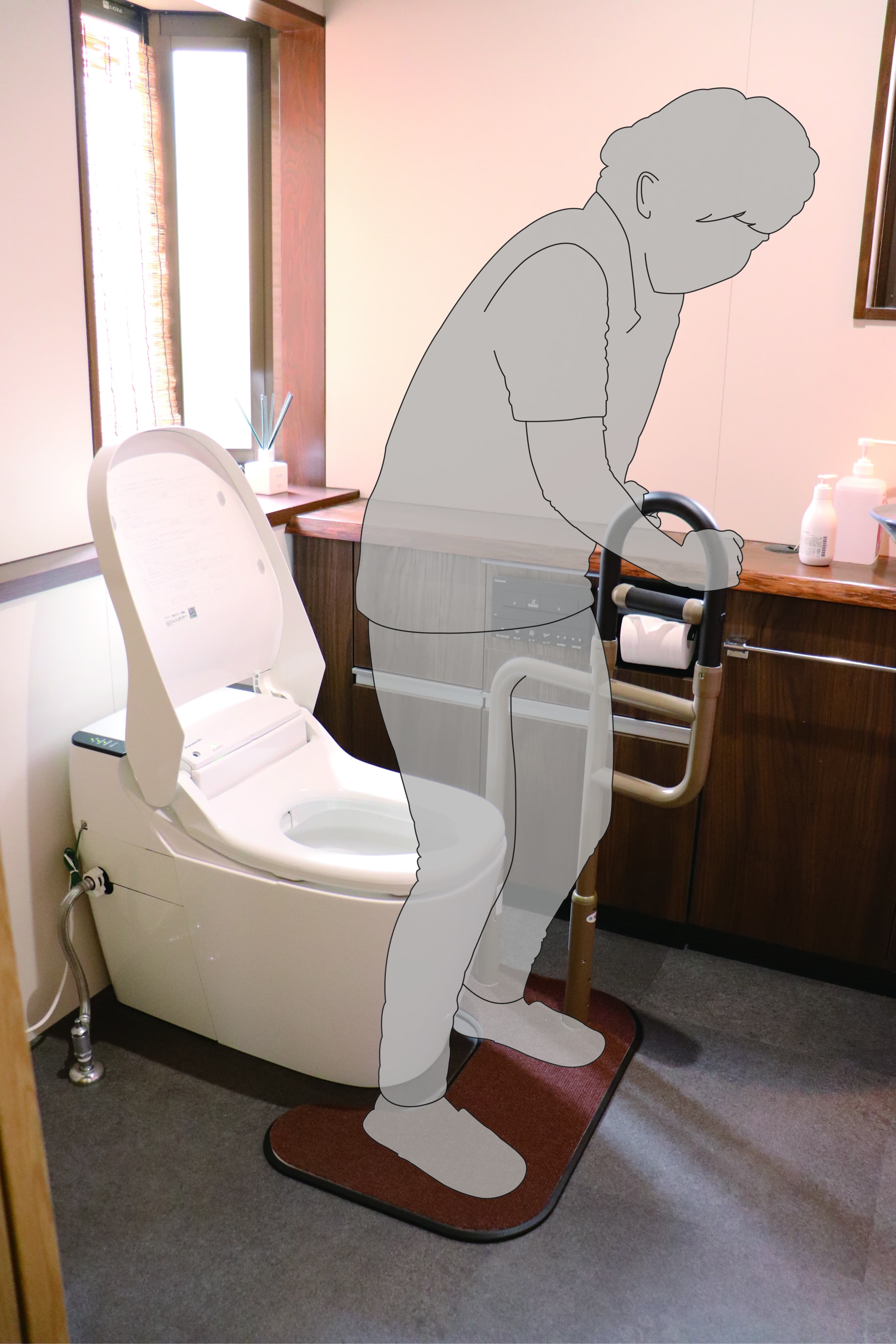最大100cmの高位置支持で、トイレ環境のケアに安心をプラスします。