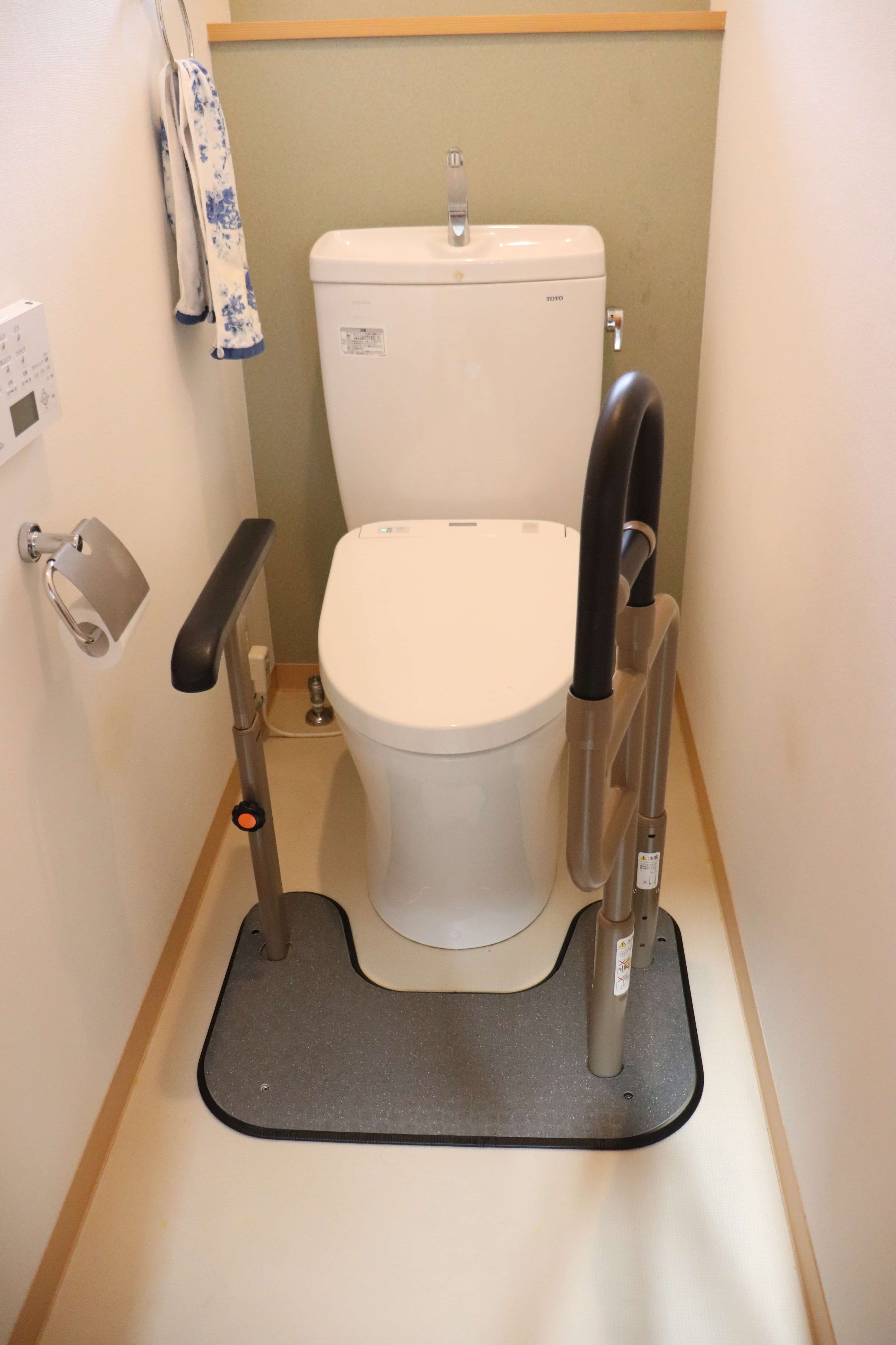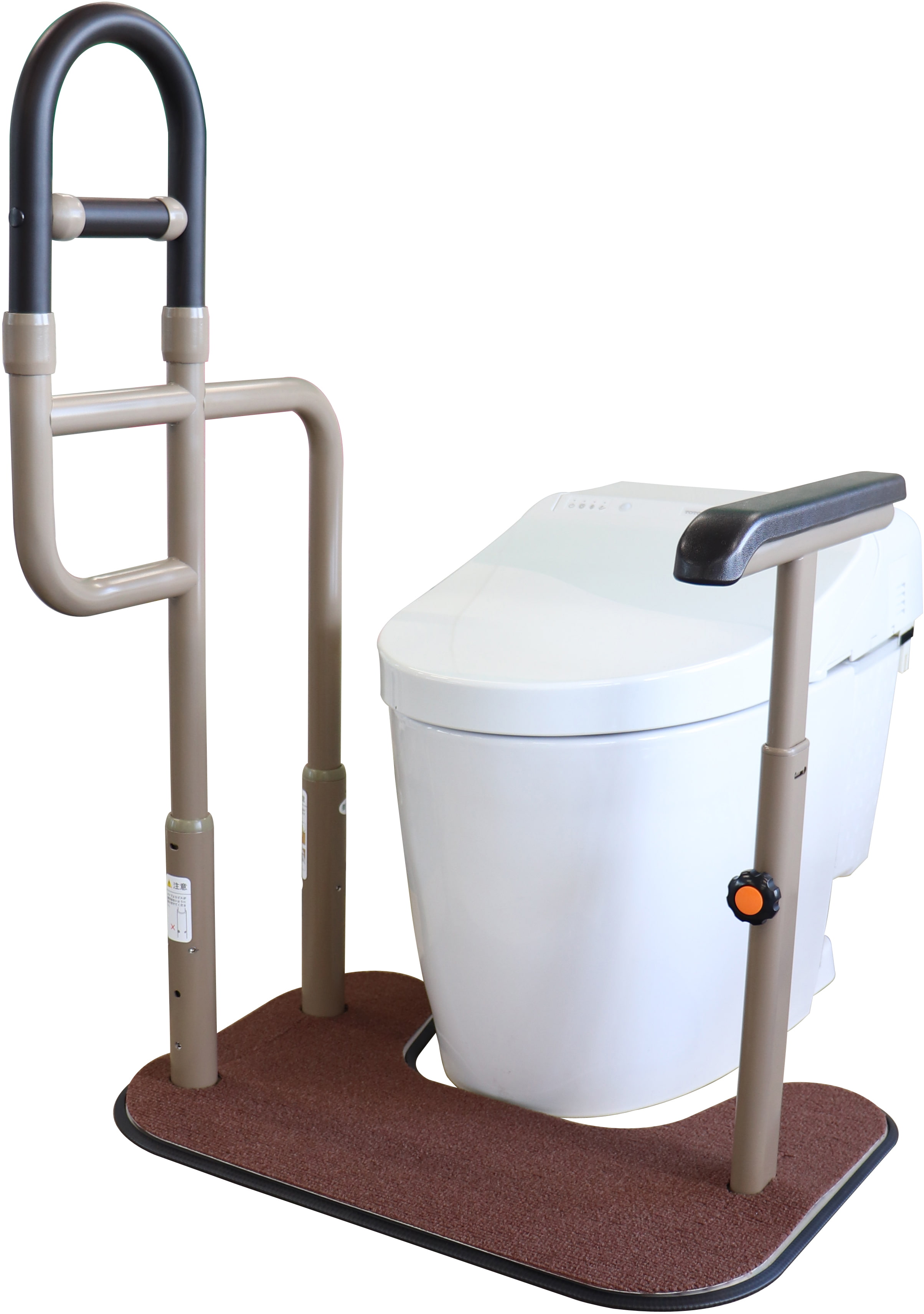 引っ張り込んでの立ち上がりが可能なトイレ用置き型手すりです。