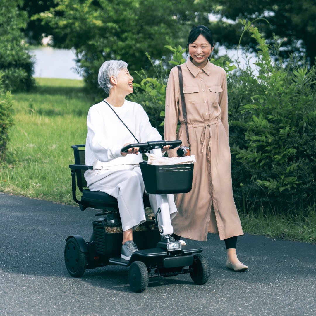 スマートになった歩道のスクーターWHILL Model R。歩道を走れる安心感がありながら、ハンドルを握って操作する運転の楽しさも、存分に感じられます。どんな住環境やシーンにもなじむ機能性を備えた、今までにない心地よさを体感いただけます。