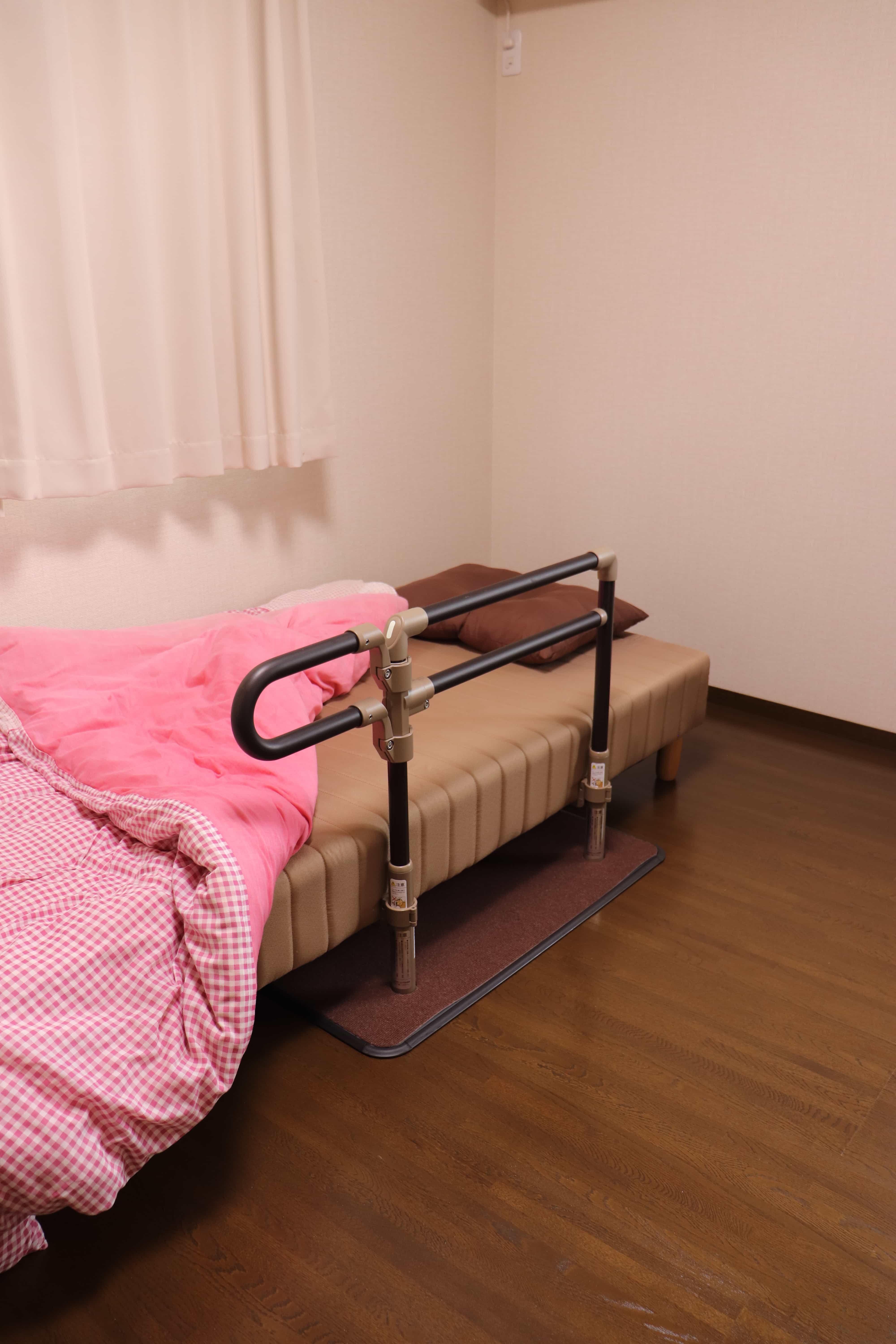 BSモアシリーズの手すりに取り付けて、ベッドサイドでの立ち上がり、移乗補助、座位の保持として使用できます。
