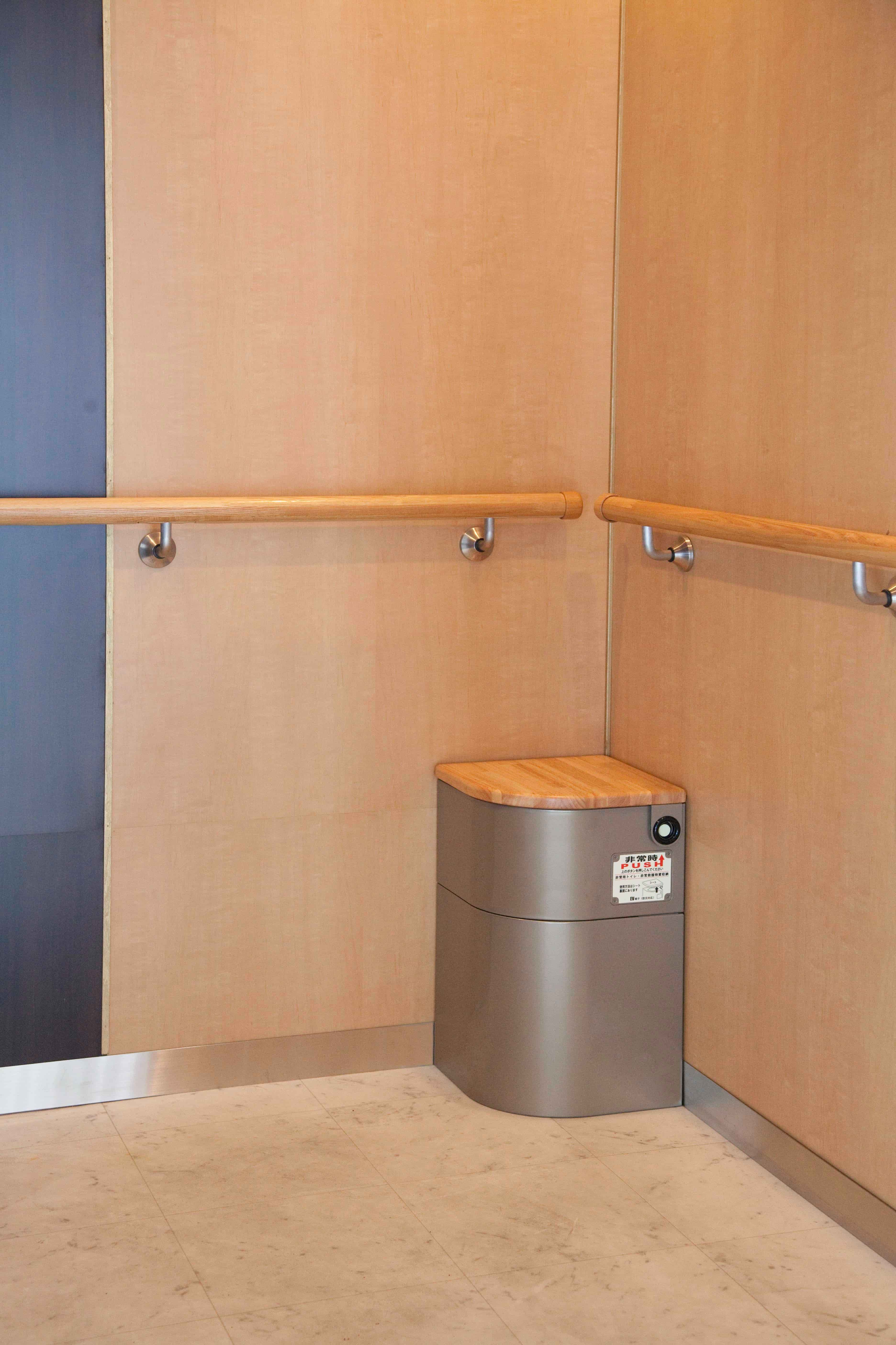 また、通常は椅子として快適な空間を演出、非常時にはエレベーター内の防災対策に。