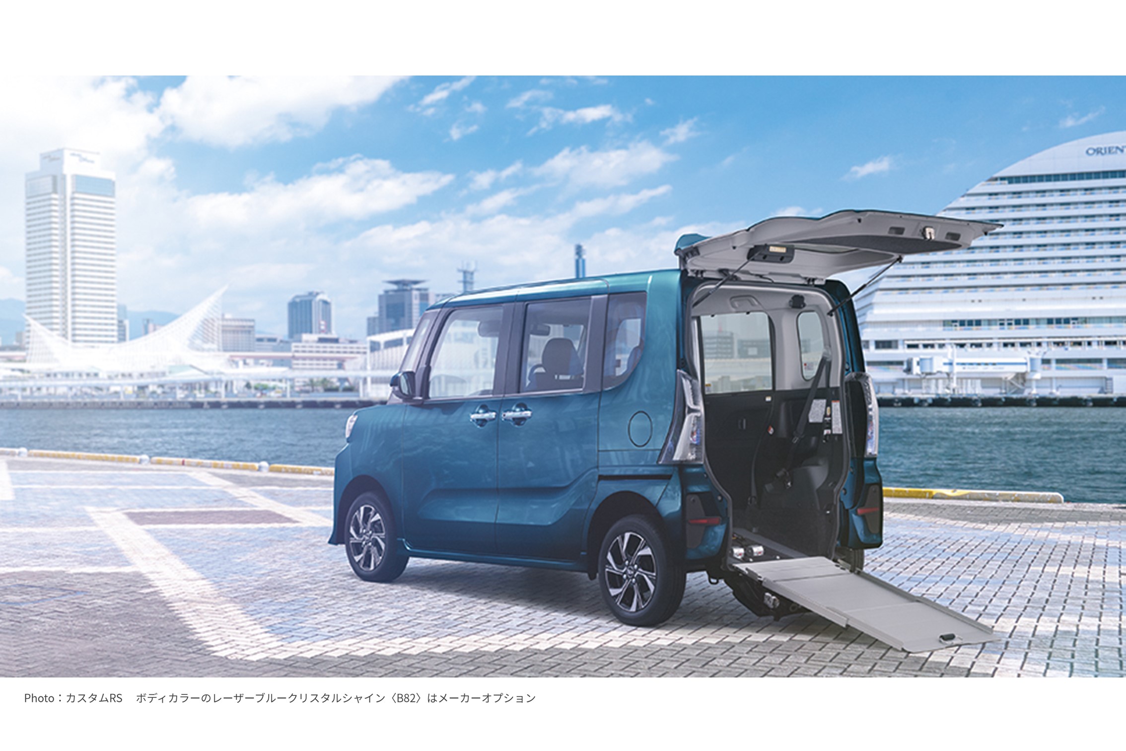 タント唯一の取り外し可能なリヤシートは、リクライニング車いすなどより多くの車いす乗車に役立つだけでなく、簡単操作の前倒し機構付きスロープとの組み合わせにより、多様な荷室アレンジで様々な日常シーンで活躍します。