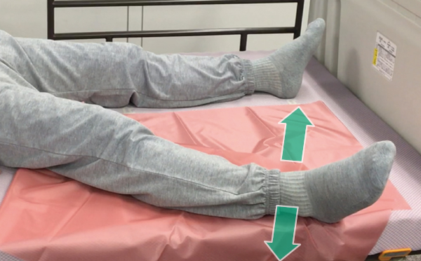 2枚重ねるか二つ折にして二重にして使用します。あらゆる方向によく滑り、体位変換、移動やシート着脱時の摩擦を軽減するのに役立ちます。これにより、介助者の身体的負担や磨耗、利用者の摩擦による怪我などのリスクや掴まれたり触れられることの不快感などを軽減します。体位変換、位置移動・移乗、シーティングやリハビリなど多くの場面で利用されています。必要な長さを切り出して使用できるロールタイプ以外に、利用しやすい長さに予め切ったカットタイプ(一部介護保険福祉用具貸与対象)もあります。