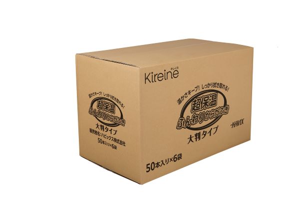 「Kireine超保温ふんわりからだふき」は、エアレイド製法で作られた非常に嵩高でやわらかな肌触りの不織布を使用し、圧倒的な保水力と超厚手な清拭用シートを実現しました。この特別なシートにより、電子レンジやウォーマーによる保温を従来品よりも長時間キープできるので被介護者に気持ちの良い清拭を提供します。
