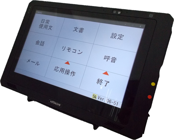 わずかに動かす事が出来る体の一部で、スイッチを操作し文字を入力して自分の気持ちを言葉にできるのが「伝の心」。また文章を作るだけでなく、DVDやテレビなど機器の操作といった機能を搭載し、患者さんの生活の質の向上を支援します。さらにインターネットや電子メールを利用して、これまでの仕事を継続する、新しい活動をはじめる、というようにさまざまな可能性をひろげることもできます。