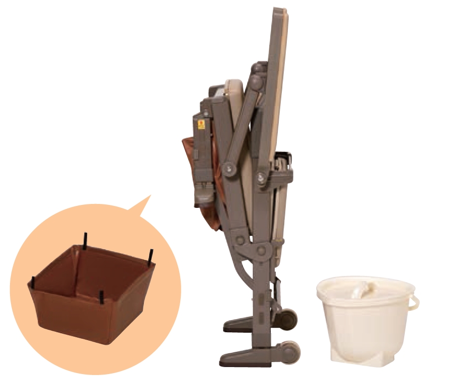 ・使用しない時はバケツ、二重バケツを外し(袋タイプはバケツのみ)折りたたむことができます。