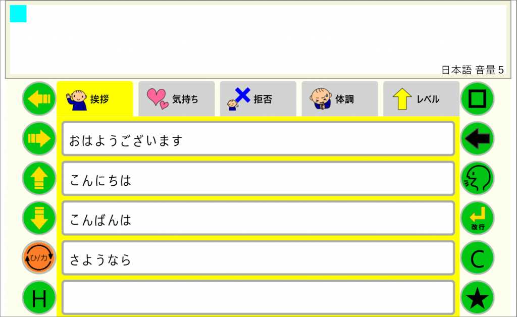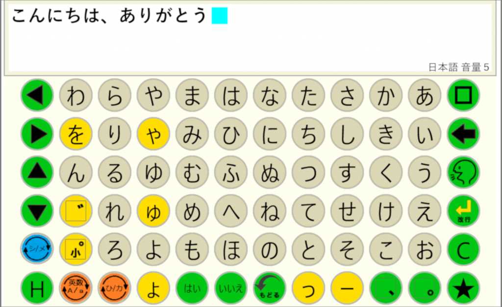 ひらがな・カタカナ・英数キーボードを利用して文章を作成し、合成音声で発声させます。