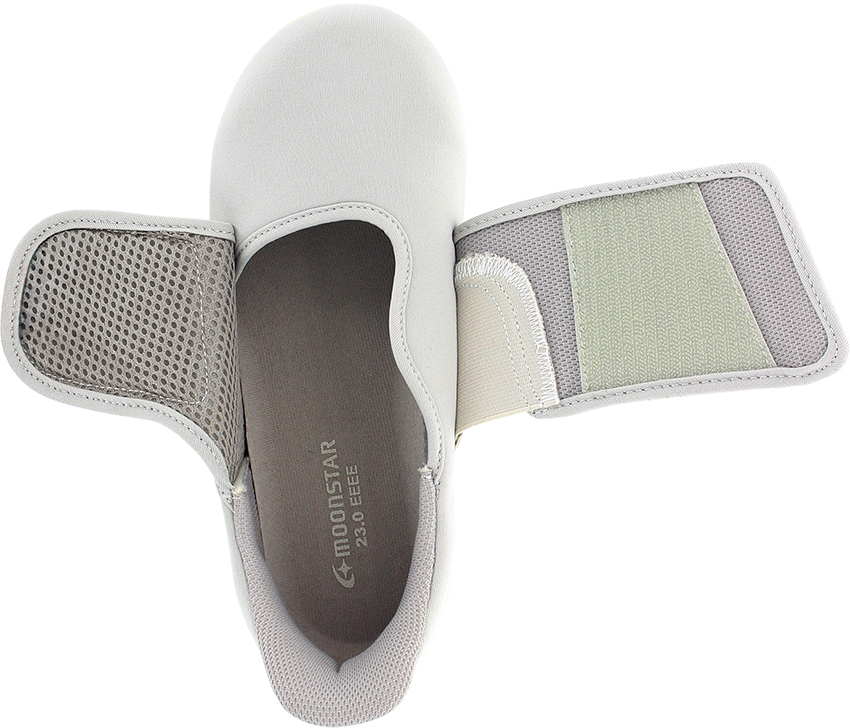 履きやすく履かせやすい設計で、介助する方、される方にやさしい施設内シューズです。