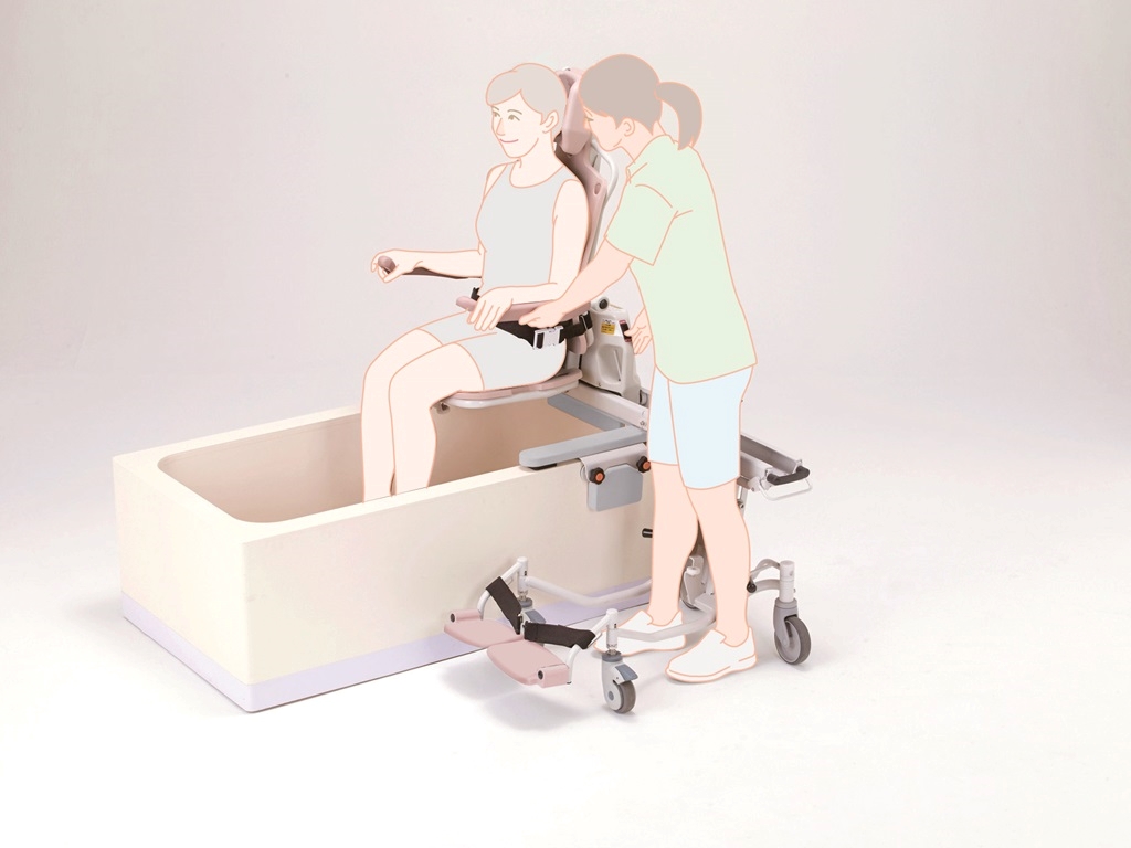 工事不要の専用レールを既存浴槽に設置するだけで、吊り上げることなく簡単に入浴していただけます。