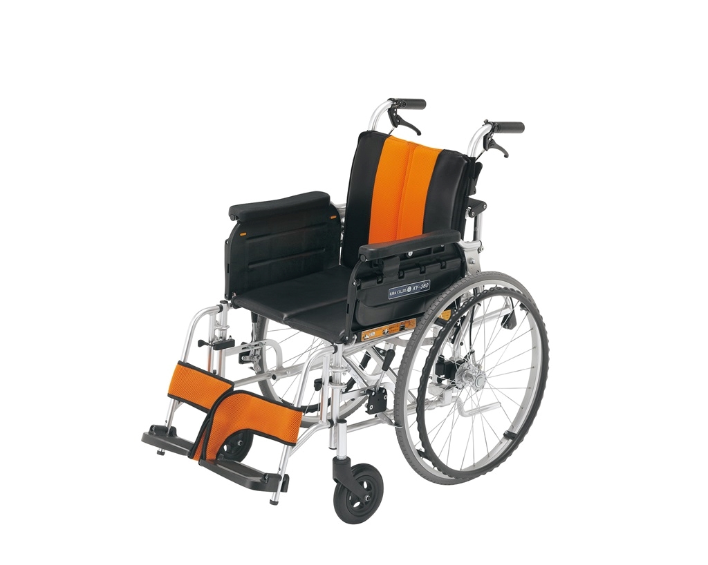 アームレストを引き上げるだけで、後車輪が後ろに移動し側面が大きく開くので、ご利用者お一人で横からの乗りかえができます。フットサポートはスイングアウトし、簡単に取り外すこともできますから、乗り降りの際に邪魔になりません。簡単に折りたたむこともできるので、収納場所をとりません。