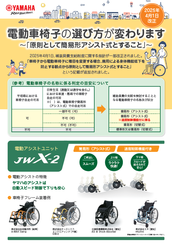 「車椅子から電動車椅子に種目を変更する場合、廃用による身体機能低下を防止する観点から原則として簡易形アシスト式とすること」という記載が追加されました。
