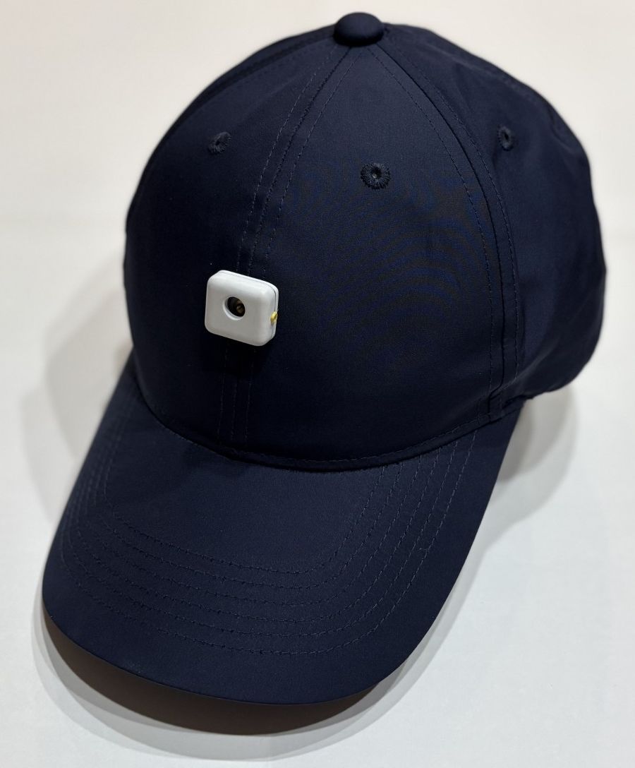 ユーザー保有の帽子に取り付けられる”距離センサー付き障害物アラート機器”・・・試作品