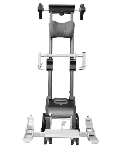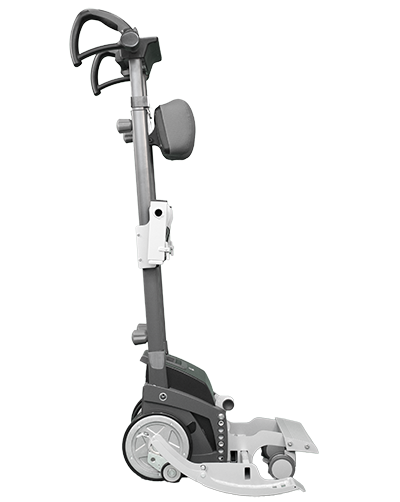 新製品。ディスプレイ表示になり、保持角度が確認でき操作性及び安全性が向上しました。ポート部に直接車いす乗せて、階段昇降をさせるための仕様です。ポート部に車いすの後輪を乗せ、固定して使用します。