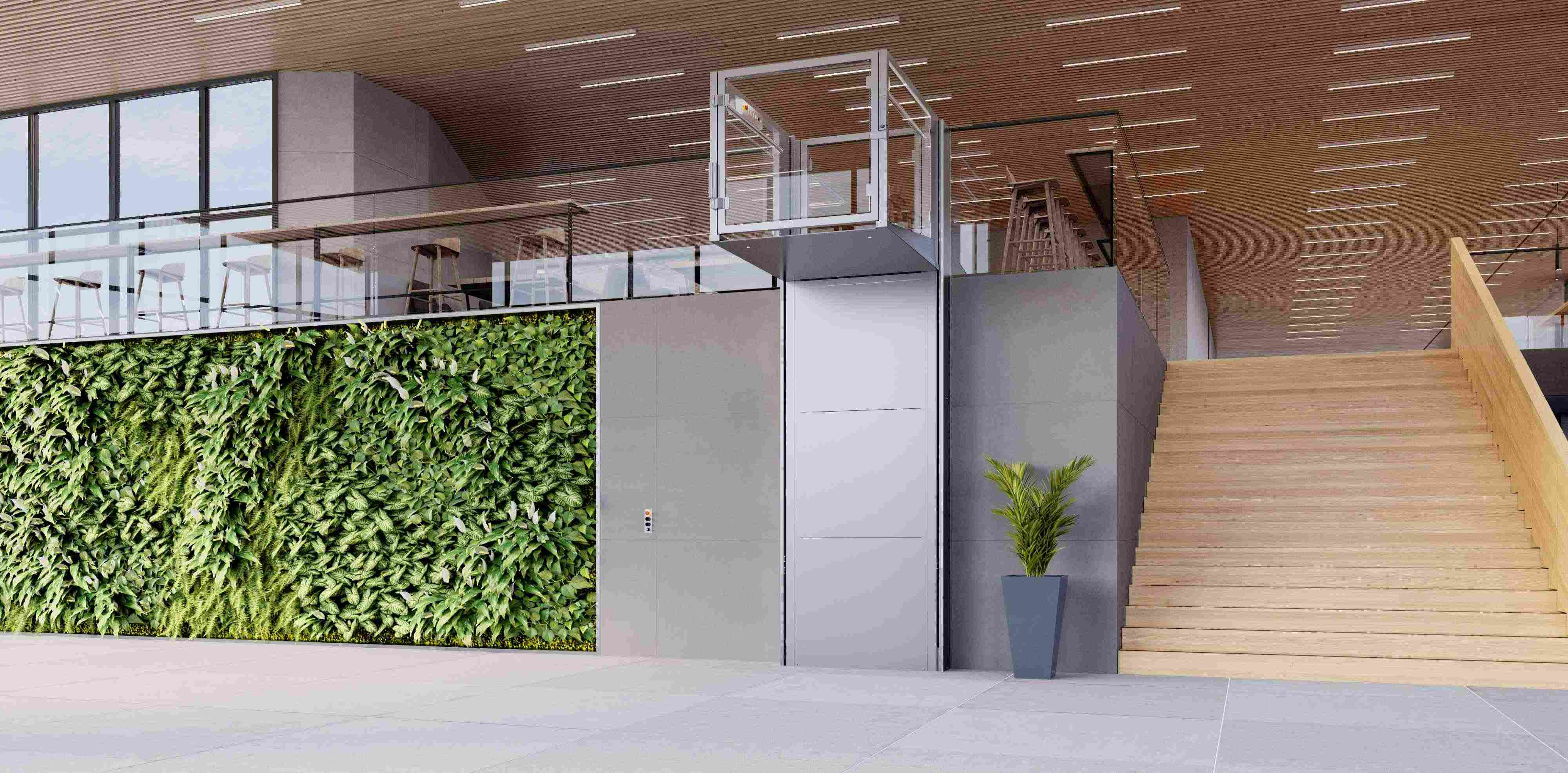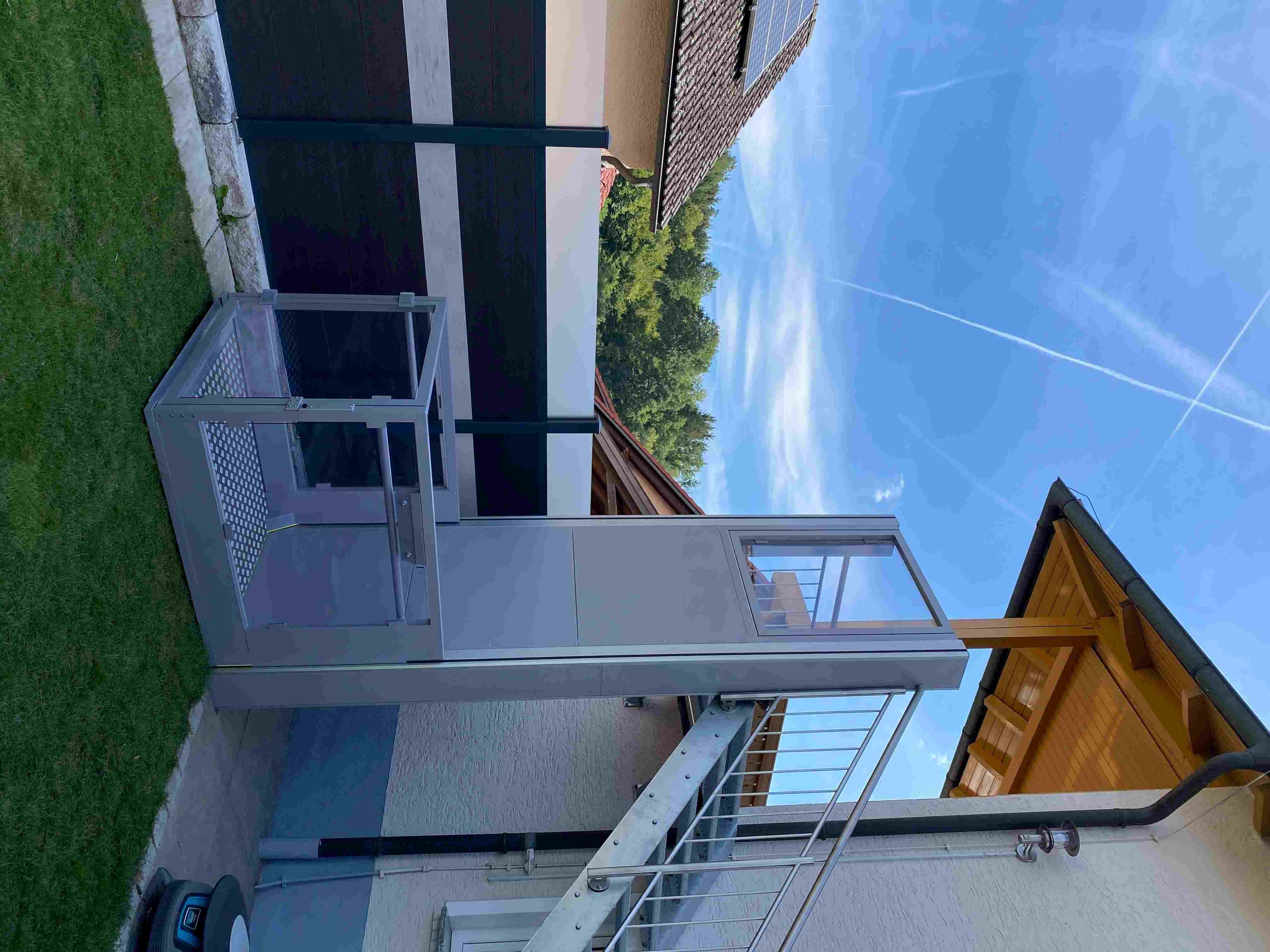 屋外にも設置可能で、昇降行程は最大4mです。(3m以上の場合は特注)