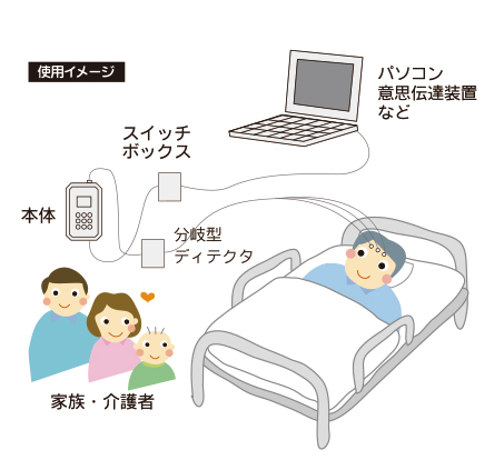生体現象方式の意思伝達装置となりますので、脳波・筋電・眼電信号を利用して操作します。MCTOSが使用できる条件として意識と意思がはっきりしている事。耳が聞こえ、言葉が理解できる事。不随意運動がない事(又は少ないこと)です。主な対象者としては、眼球・筋肉が特に動きにくい又は動かない方になります。各種機器、パソコンの操作が可能です。