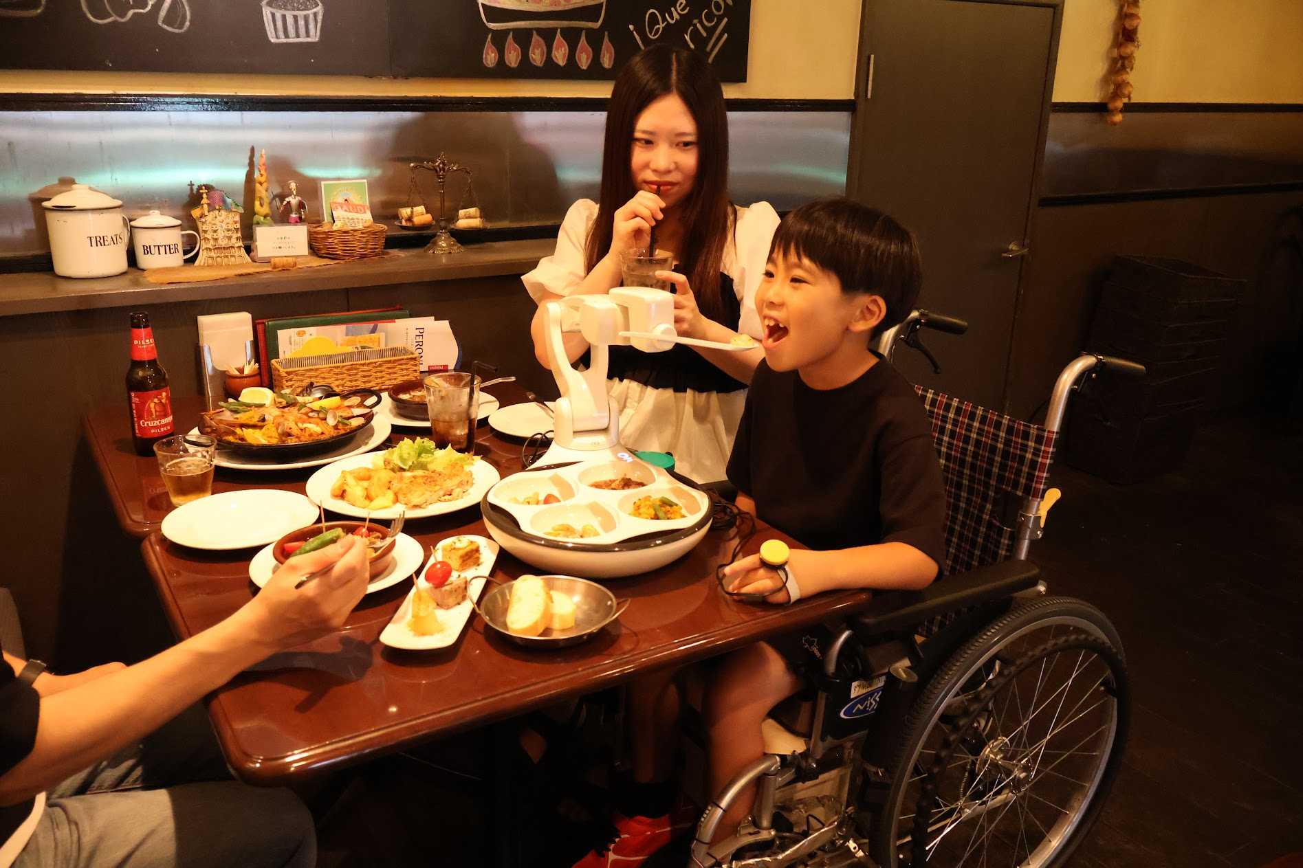 上肢機能障害や麻痺などで自力での食事が難しい方に向けた食事介助ロボットです。普段と同じ食卓に設置し、身体に合ったスイッチで操作するだけで、自分のタイミングで4つのお皿から食べたい物を選び、自由に食事ができます。動きは滑らかで、うずらの卵より小さい食材でもスムーズにすくえます。白を基調としたスタイリッシュなデザインで、レストランやホームパーティーにも持ち運び可能。家族や友人と共に食事を楽しめることで、ユーザーのQOL向上に繋がり、支援者にとっては介護負担の軽減にも貢献するロボットです。